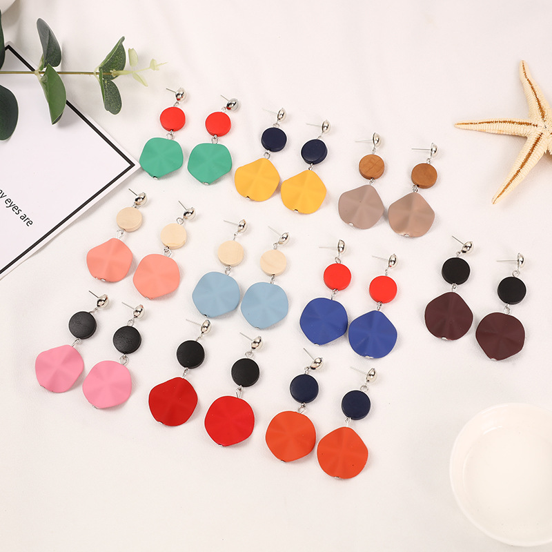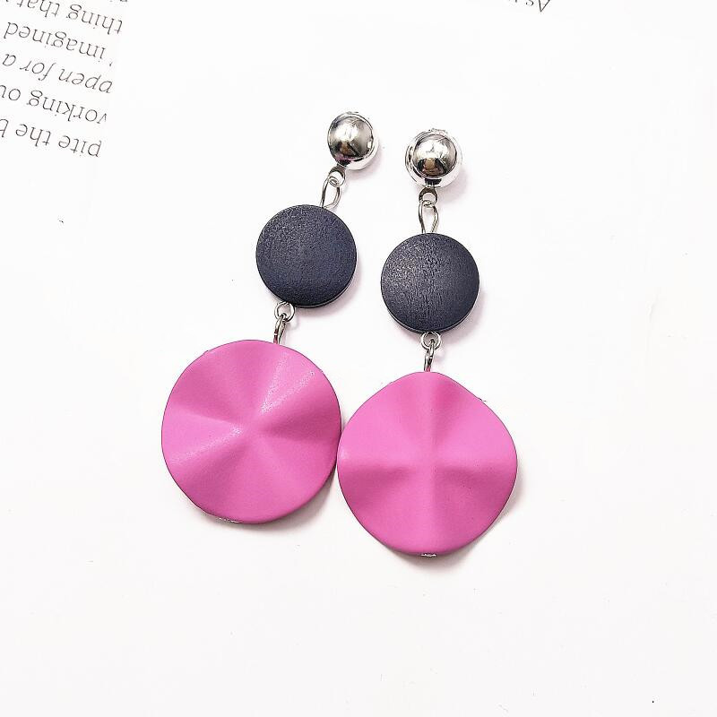 Simple wave earrings fashion geometric retro wooden round earrings
