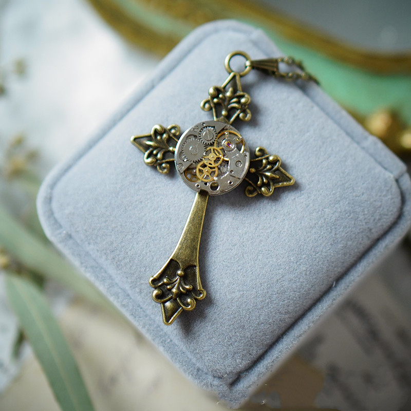 Size: dial round 20mm, cross 67*40mm, default with bronze chain 70cm long (sweater chain)