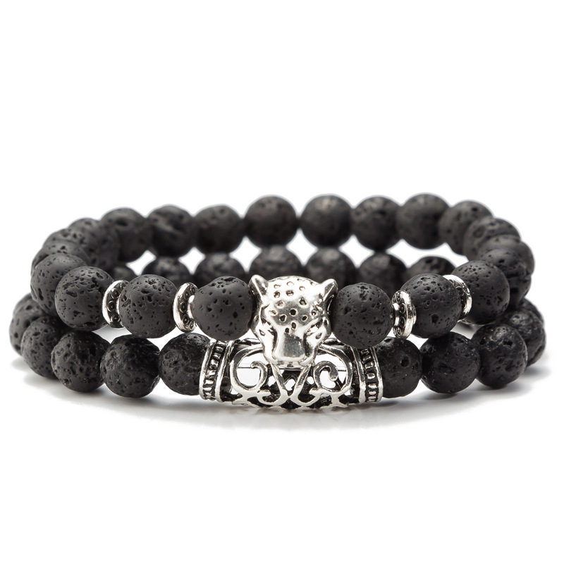 Agate Beads Ornament Lava Volcanic Stone Leopard Head Set Bracelet