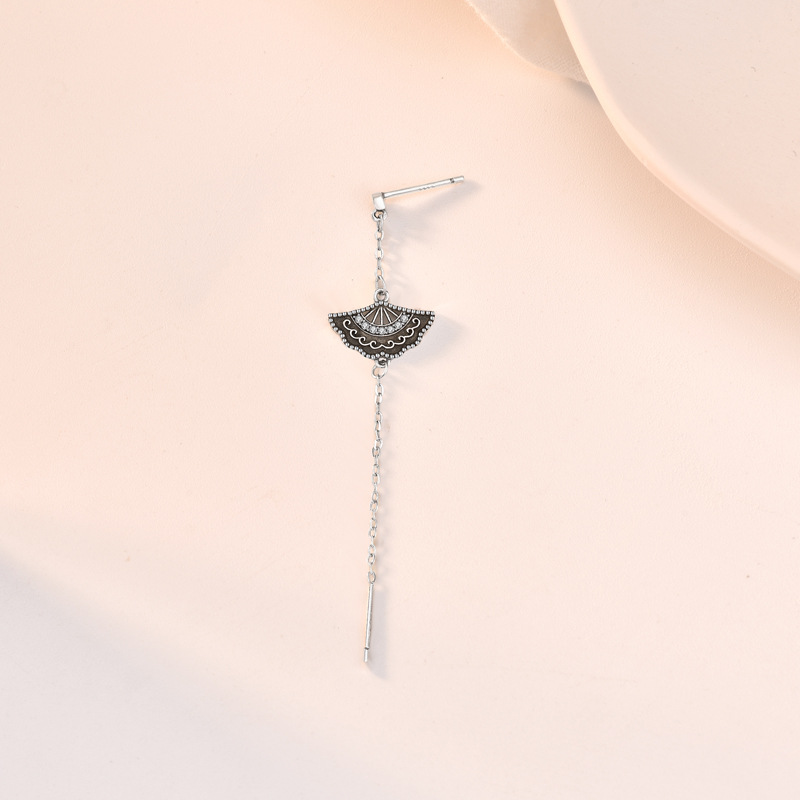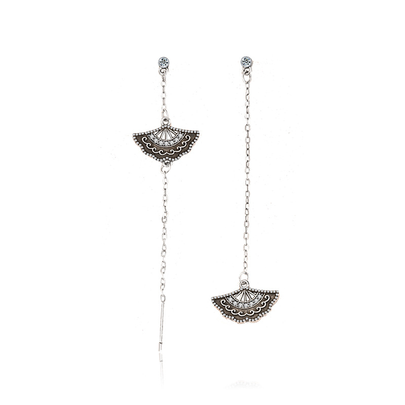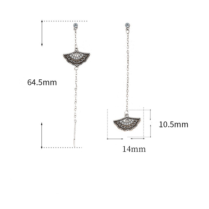 Sterling Silver Zircon Tassel Long Fan Earrings