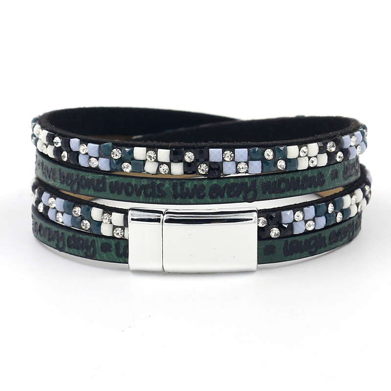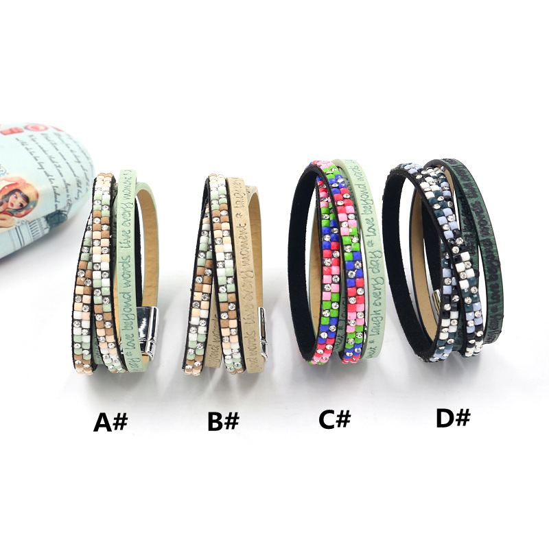 Product information:Style: exoticMaterial: artificial leatherType: BraceletStyle: Women'sShape: Letters/Numbers/TextInlay material: loose gemstoneColor: A#,B#,C#,D#Package:Leather bracelet x1