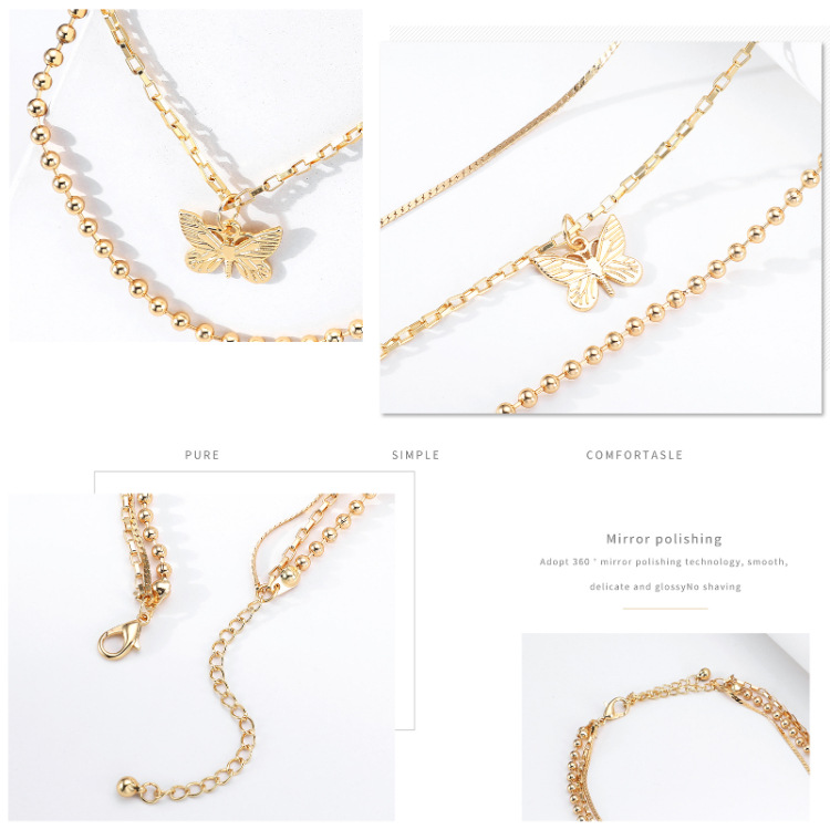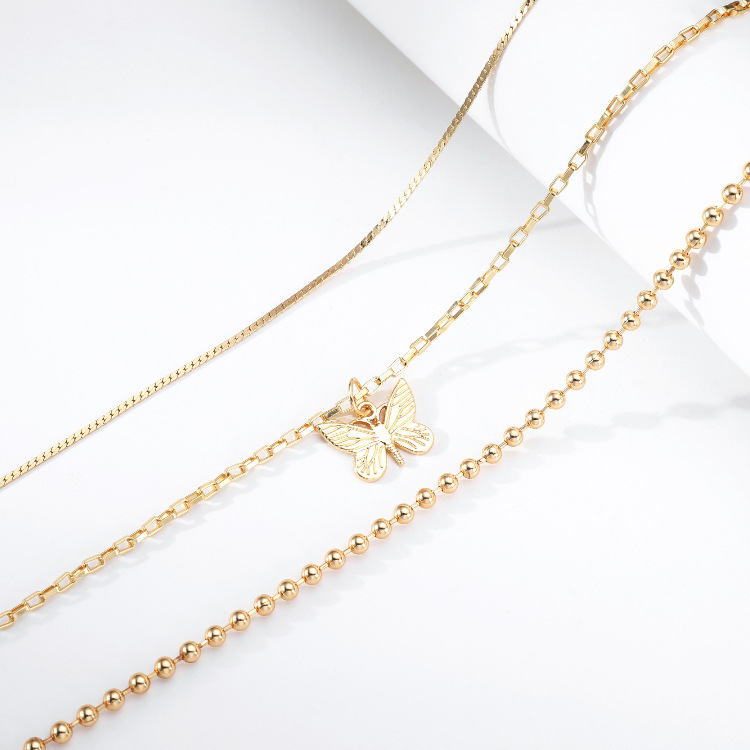 Multi-layer Alloy Bead Chain Flat Chain Unisex Necklace For Men And Women