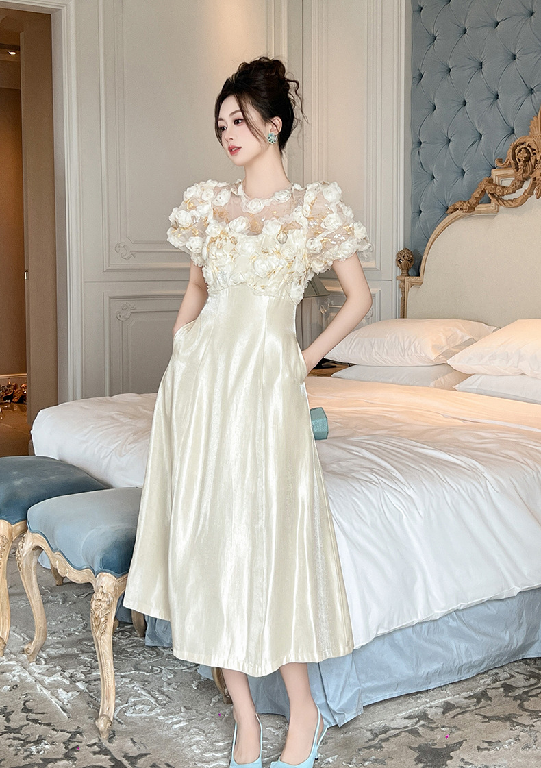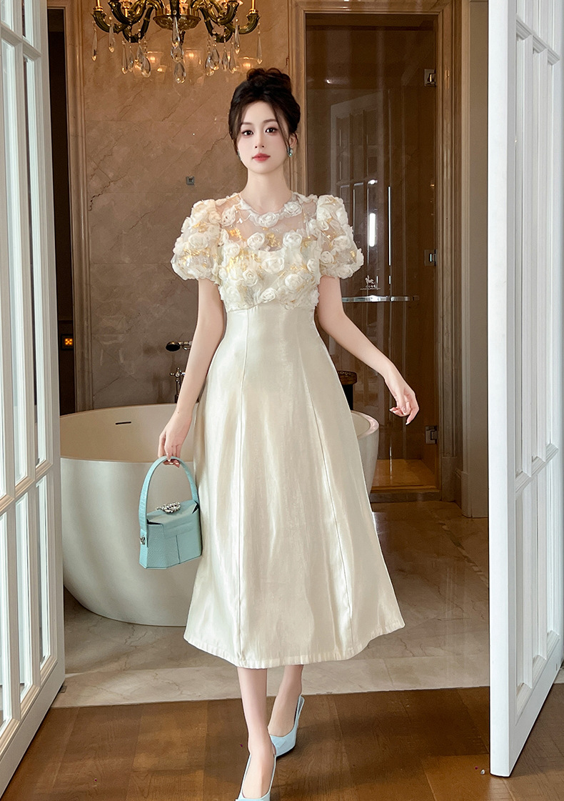 Product information: Color: Champagne Waist type: high waist Size: S,M,L,XL Sleeve type: puff sleeve Main fabric composition: viscose Sleeve length: short sleeve Skirt Category: Dress