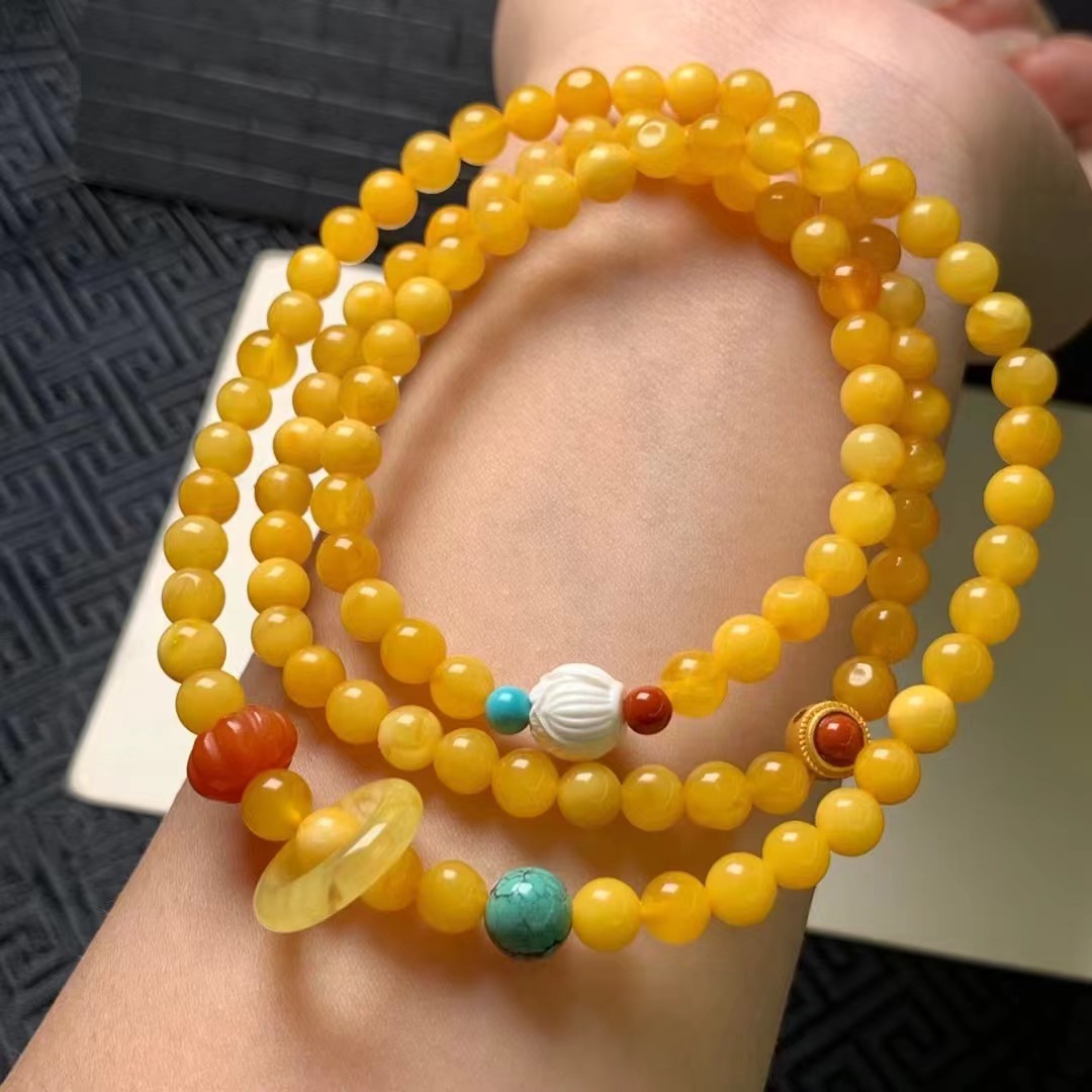 Natural Beeswax Old Honey Flower Wax Multi-Circle Bracelet