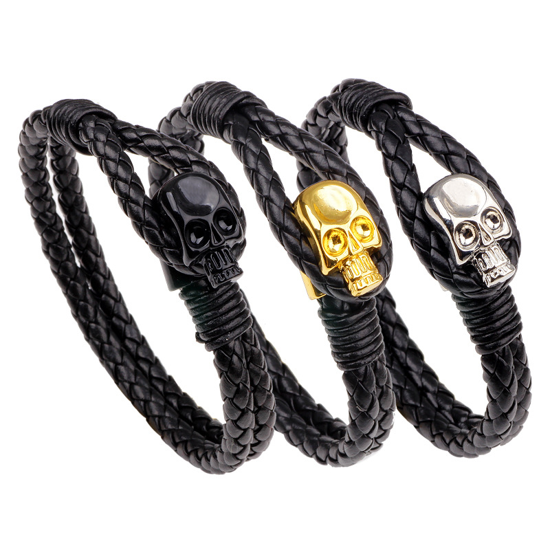 Weave-Bracelet Skull Gold-Silver-Color Jewelry Genuine-Leather Fashion Women