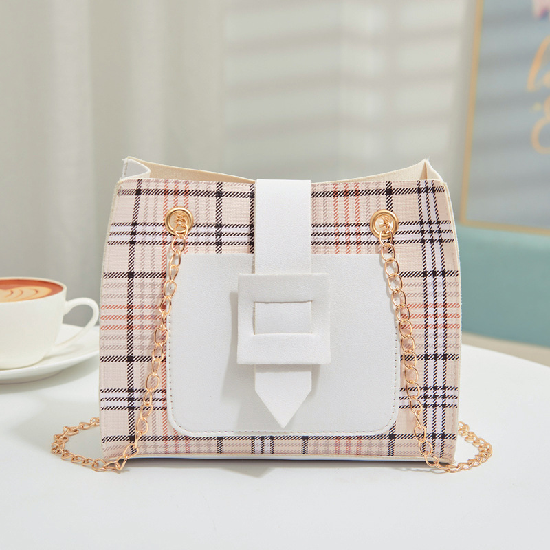 Material: PULuggage trend style: small square bagLuggage size: smallPopular elements: PlaidPattern: PlaidCarrying parts: chain handle