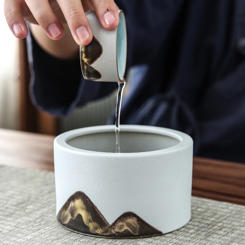 Product information:Color: Yuanshan tea Basin-black porcelain (large), Yuanshan tea Basin-Asian White (large), Yuanshan Cup wash-black porcelain (small), Yuanshan Cup wash-Asian White (small)Material: WoodenStyle: Japanese style