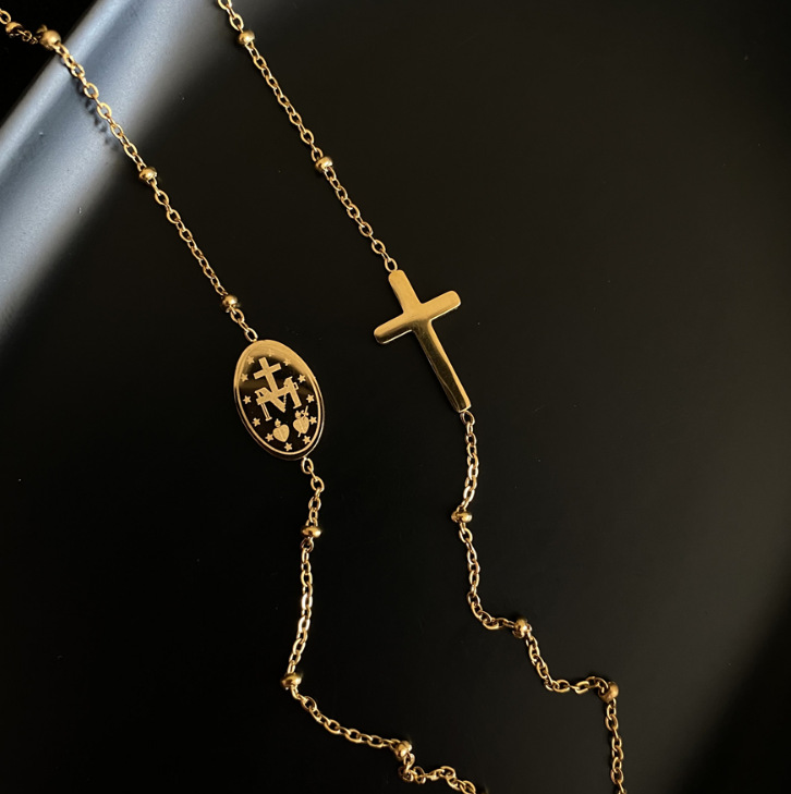 Product information:Color: 18K gold Pendant: titanium steel Chain style: water wave chain Material: titanium steel Style: Casual Size: Oval 1. 2x0.8mm, cross 0.8 X1.4 cm