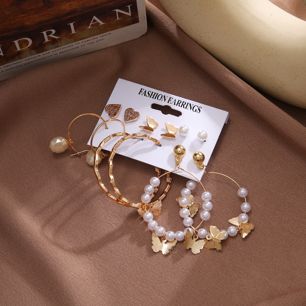 Pearl*1 alloy earrings*1 butterfly earrings*1 alloy earrings*1 round earrings*1 heart-shaped earrings*1