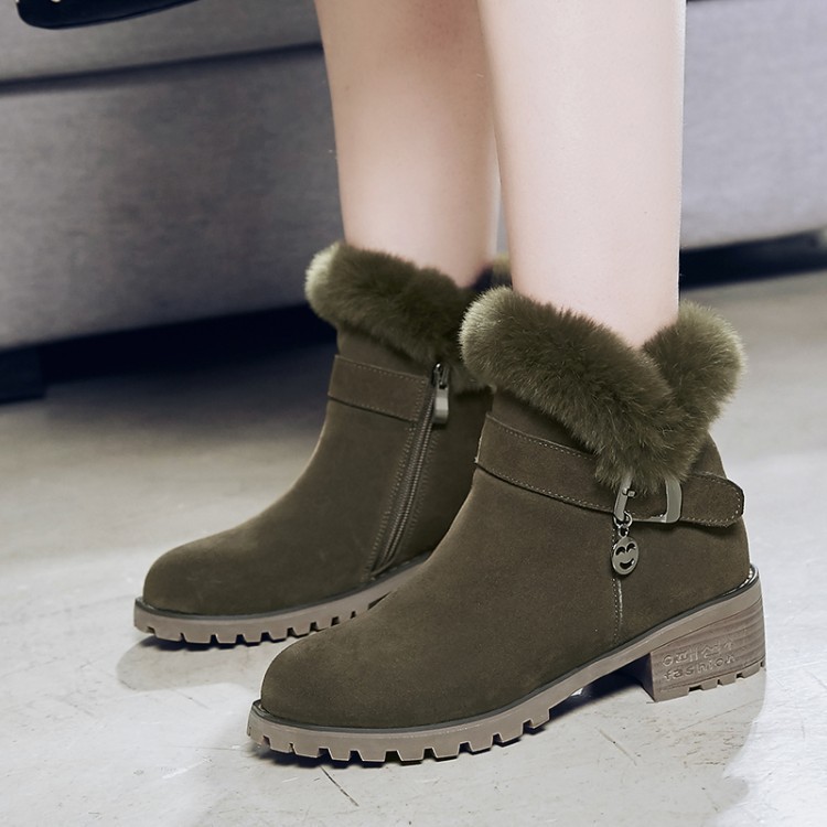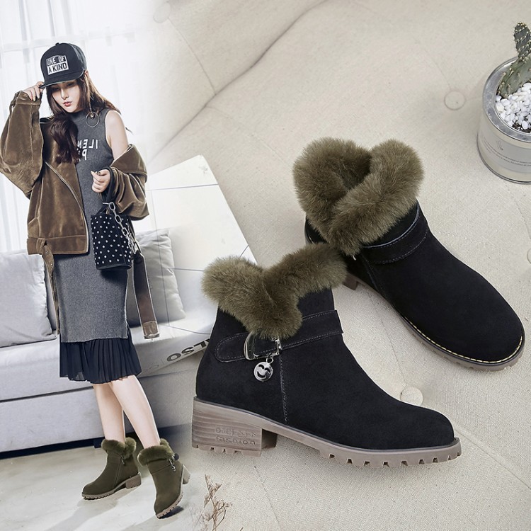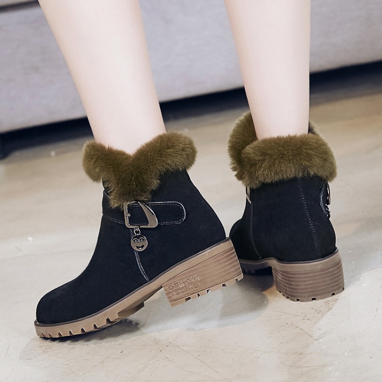 Upper material: leatherSole material: RubberApplicable gender: FemaleLeather features: cowhideProcessing method: sandingStyle: LeisureInner material of boot: artificial short plushPopular boots: short boots