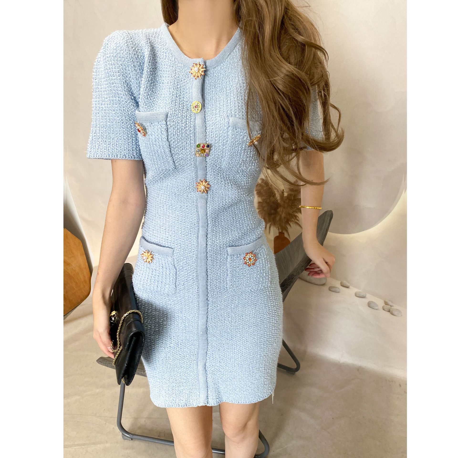 Product information: Color: Cloudy Blue Waist type: high waist Size: S,M,L Sleeve type: regular sleeve Main fabric composition: knitting Skirt Category: Dress