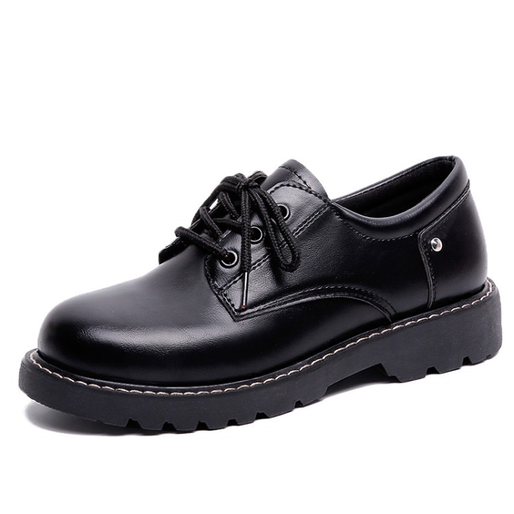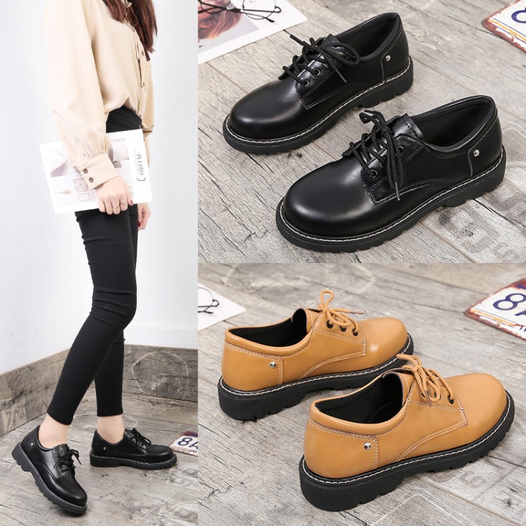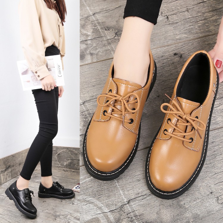 British style small leather shoes lady spring and autumn new retro round head student college Korean version flat shoes