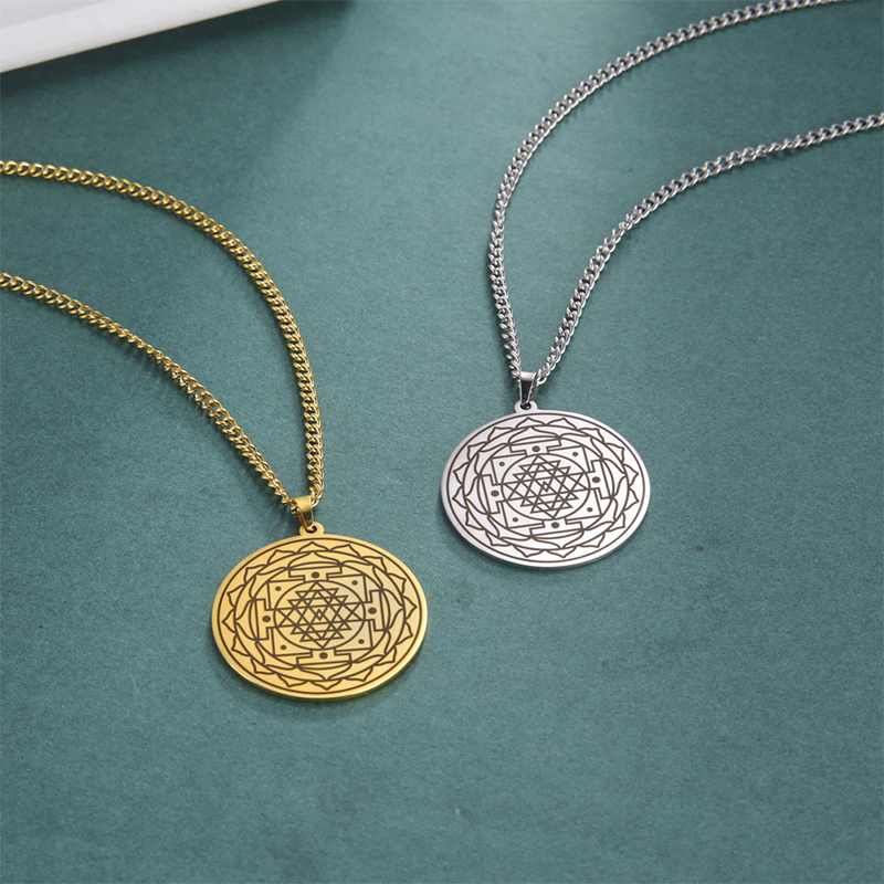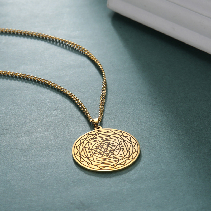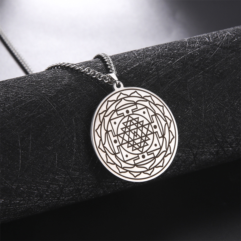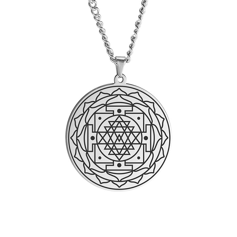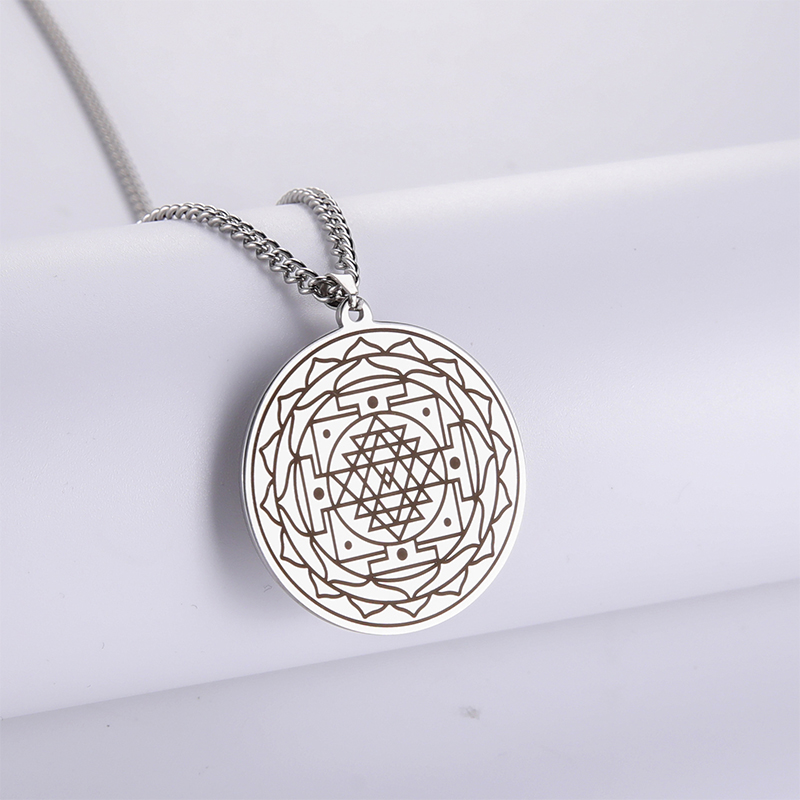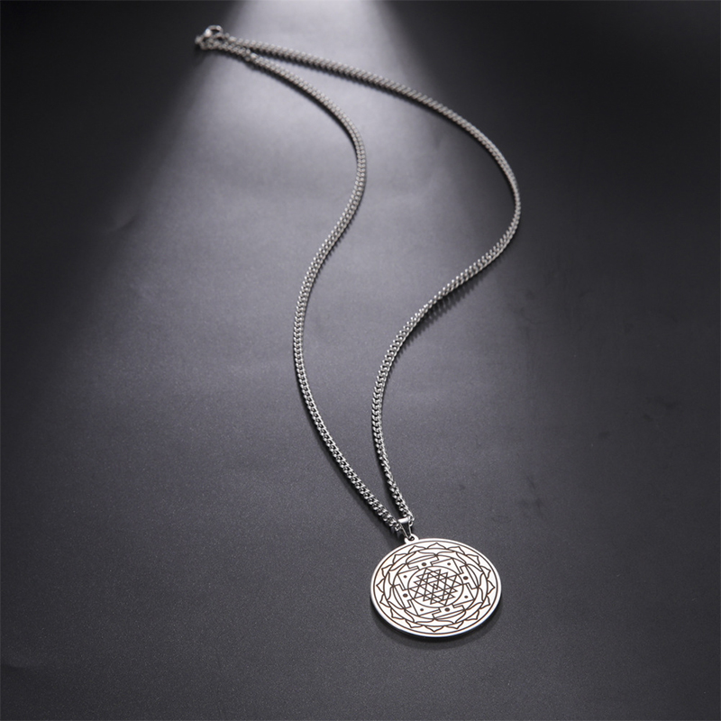 Mandala Flower Pendant Necklace Stainless Steel Sacred Geometry Necklaces