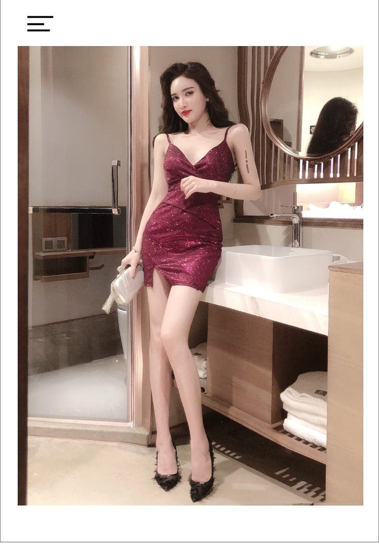 V-neck backpack hip split dress