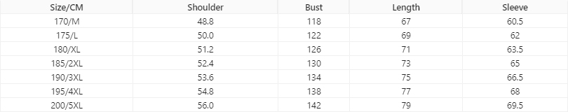 Size: 170,175,180,185,190,195,200