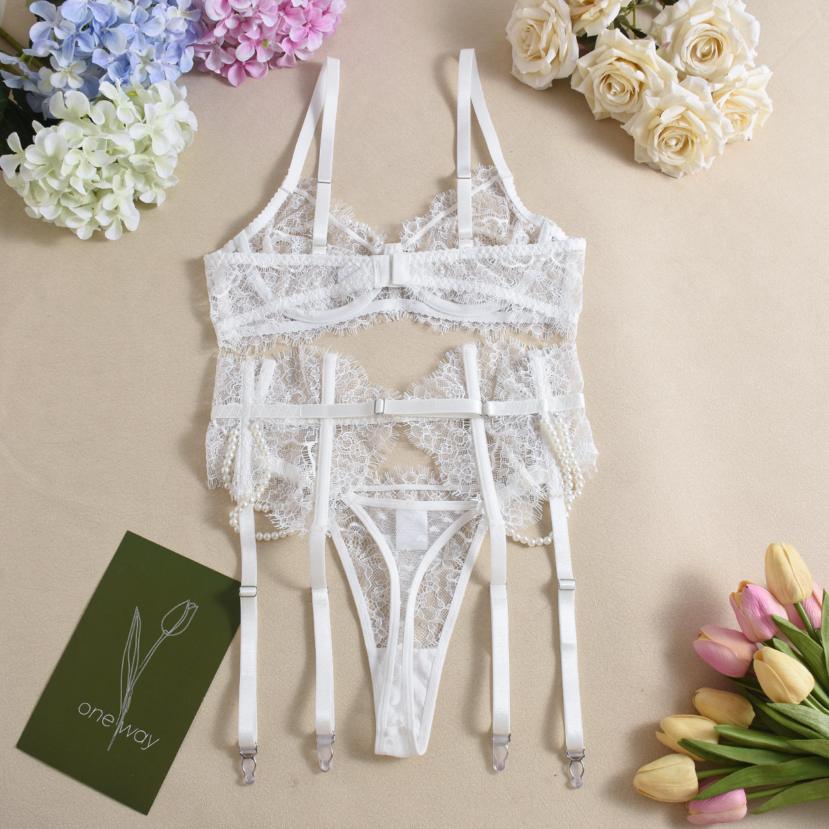 Color: light pink, white, apricot, light blue