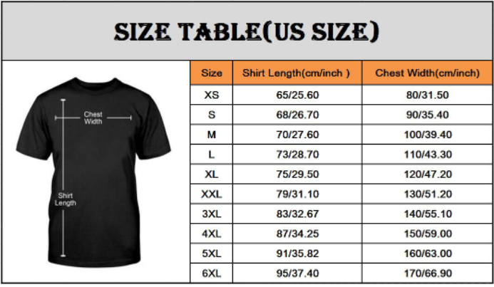 Size: XS,S,M,L,XL,XXL,3XL,4XL,5XL,6XL,7XL
