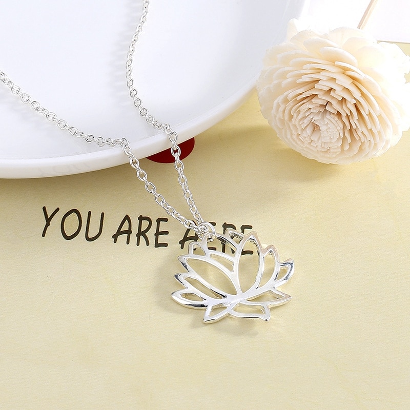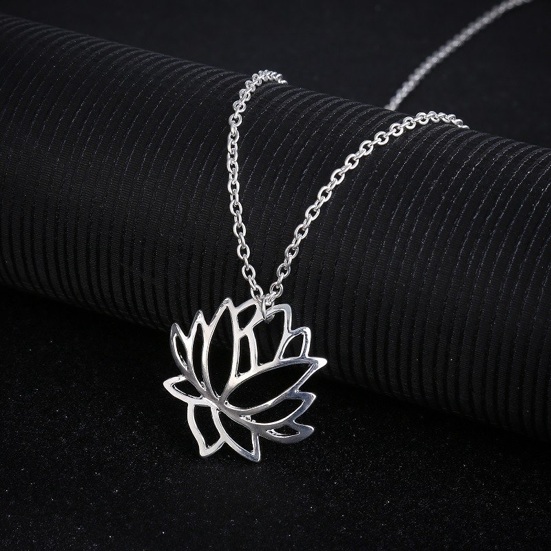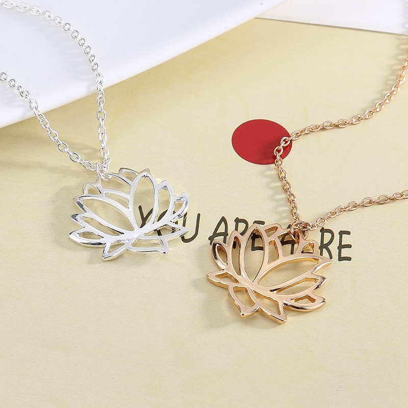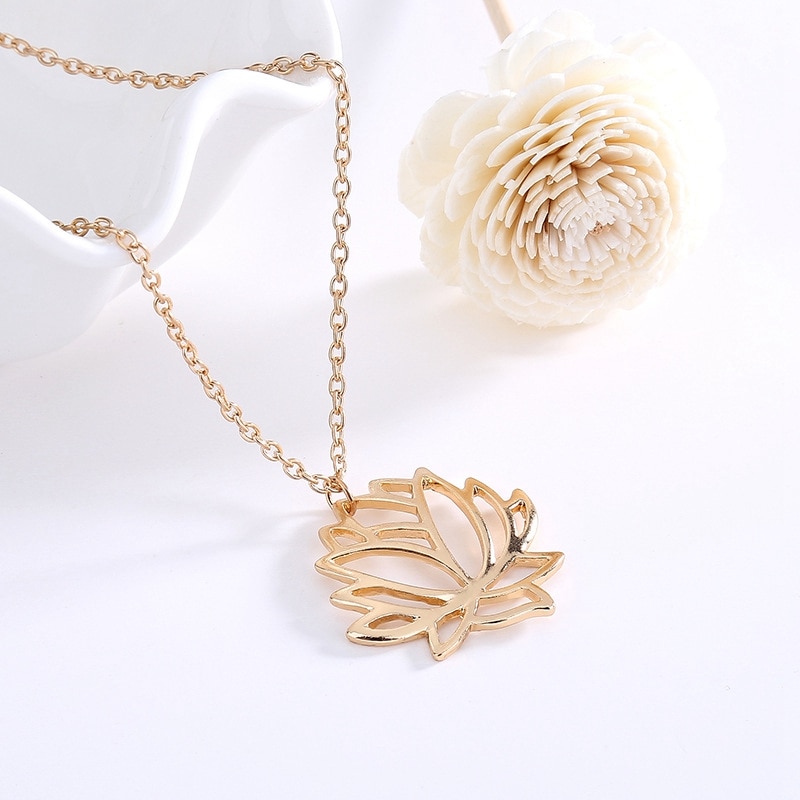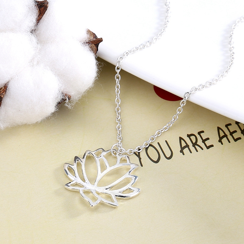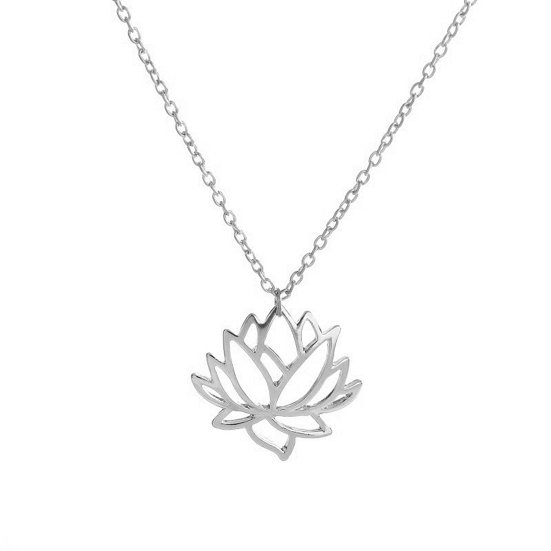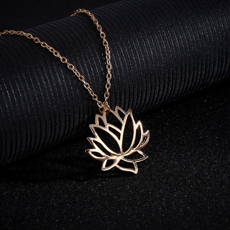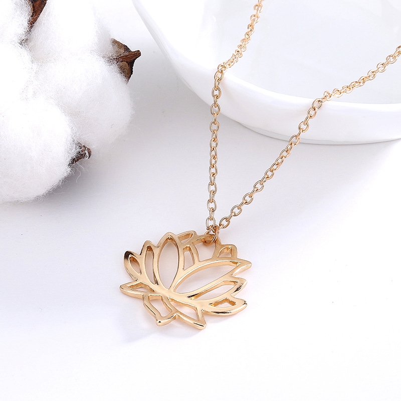 Fashion simple hollow lotus necklace clavicle chain alloy plating three-color lotus jewelry