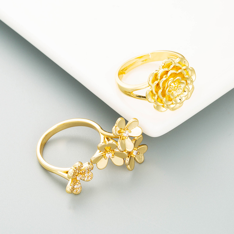 Product information:Type: RingsMaterial: CopperInlay material: gold-plated inlaid artificial gemstones/semi-precious stonesColor: one flower, four flowersSize: Opening is adjustablePacking list:Ring*1