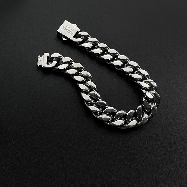 Material: titanium steelApplicable gender: maleColor classification: Buckle Cuban Bracelet 18cm Buckle Cuban Bracelet 21cmProcess: Polished mosaicBracelet length: 18cm/21cm