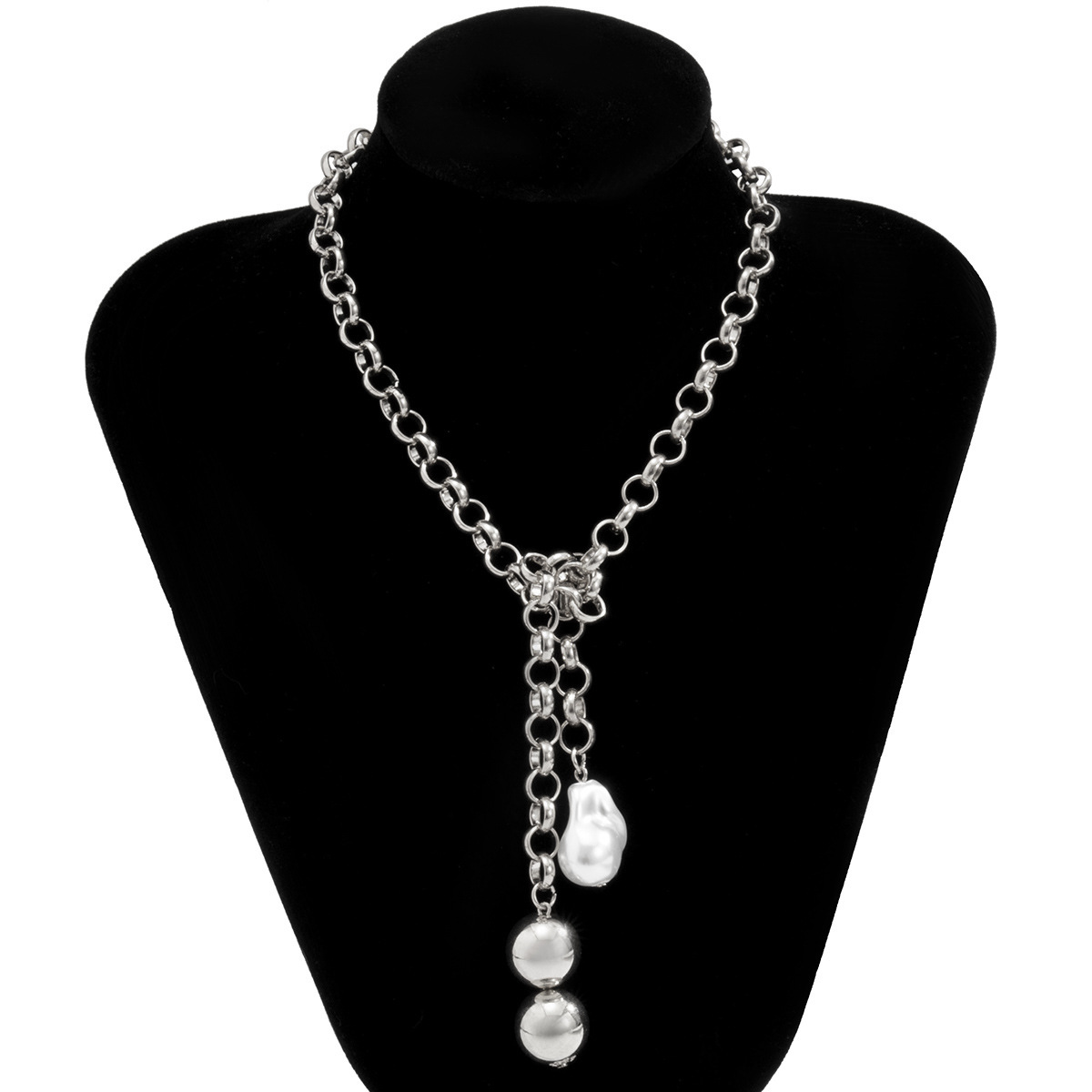 Material: iron, artificial pearl, CCBCategory: NecklaceStyle: FemaleModeling: GeometricPacking: Individual packing