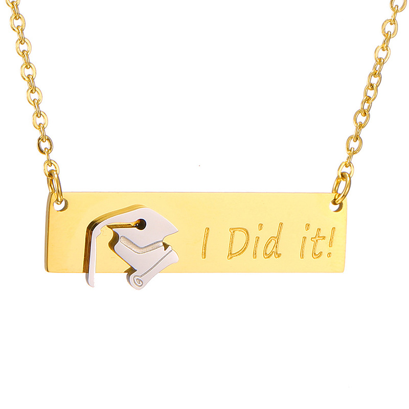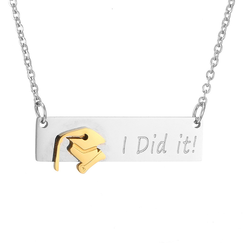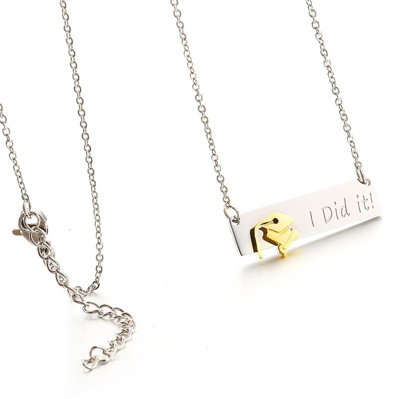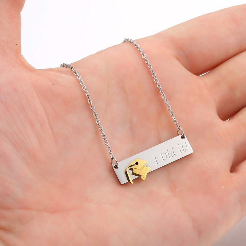 Product information:Material: Stainless steelTreatment process: vacuum platingType: pendant, pendantChain style: flat cross chainPendant size: width 38mm*height 8mm. The size of the junior scholar's hat is 9m wide