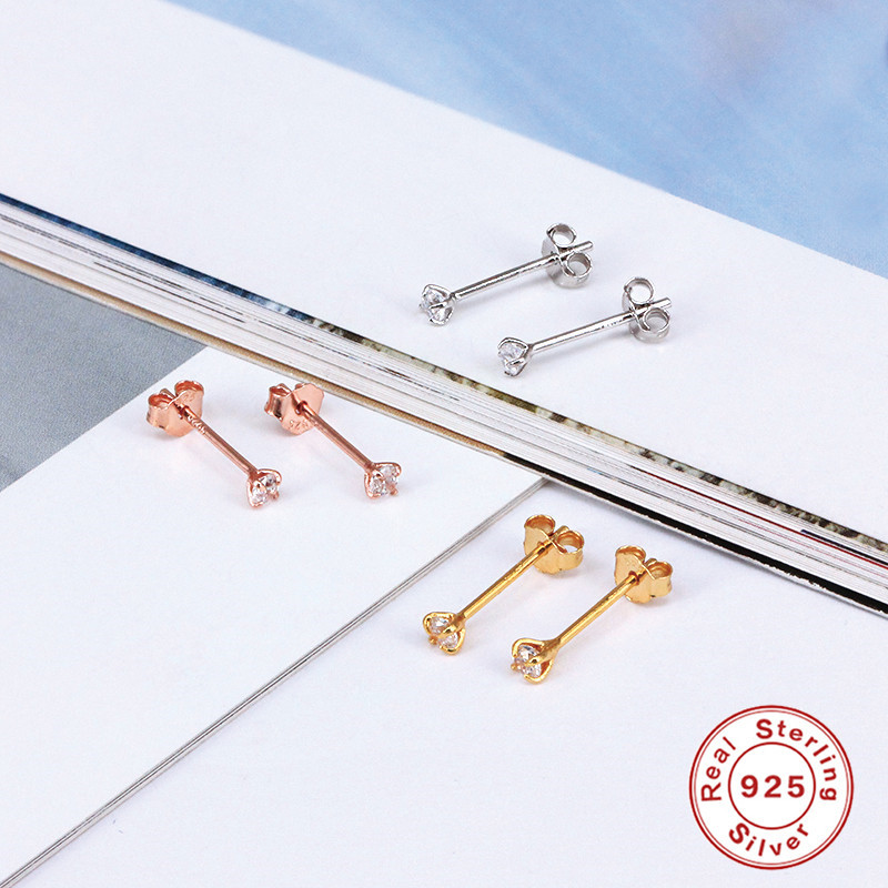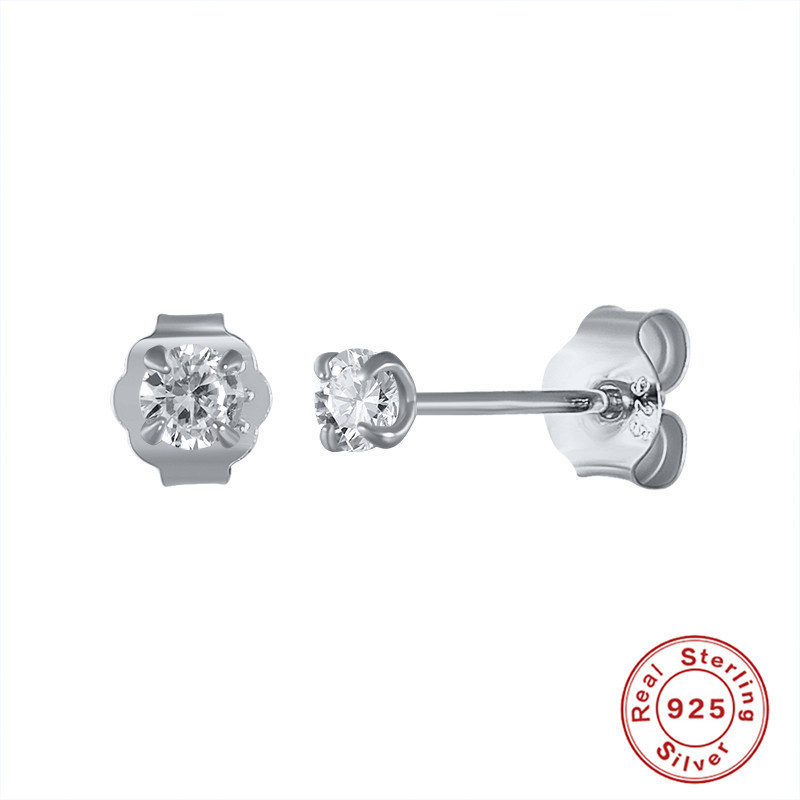 S925 Sterling Silver Mini Four-claw Zircon Earrings