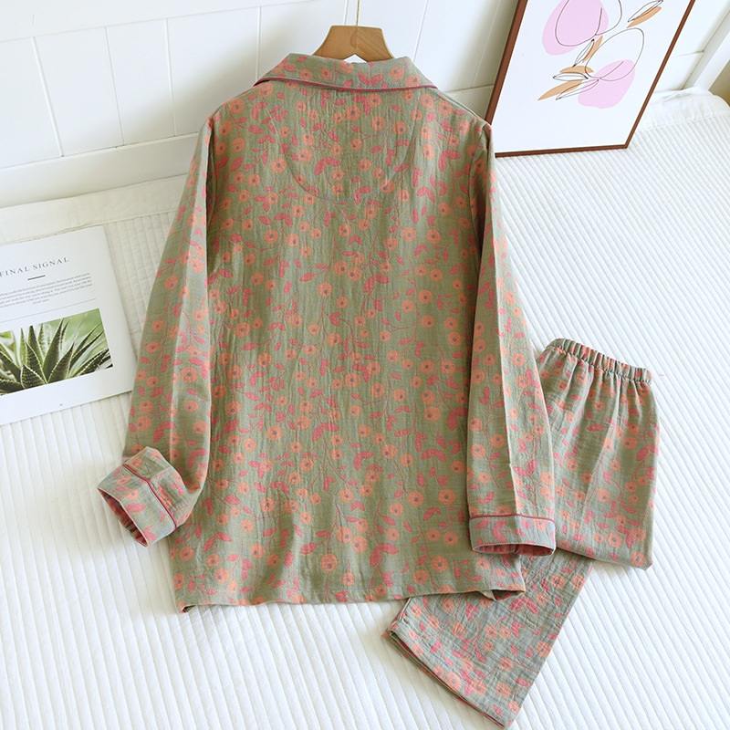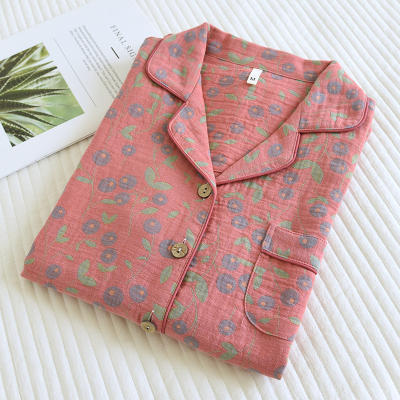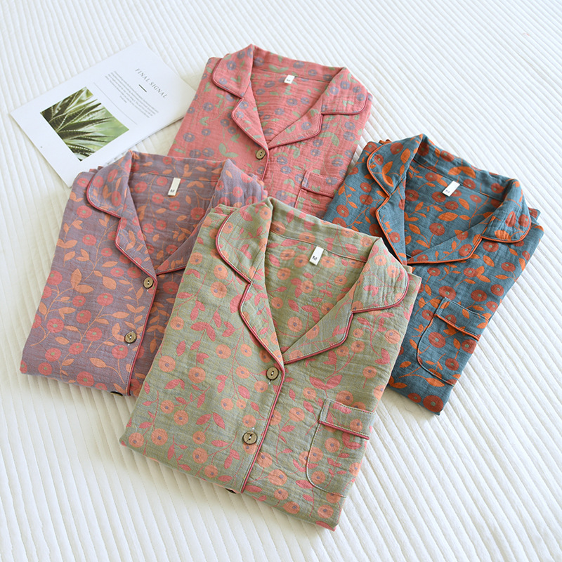 Color: purple double-sided yarn-dyed pajamas suit, pink double-sided yarn-dyed pajamas suit, blue double-sided yarn-dyed pajamas suit, green double-sided yarn-dyed pajamas suit