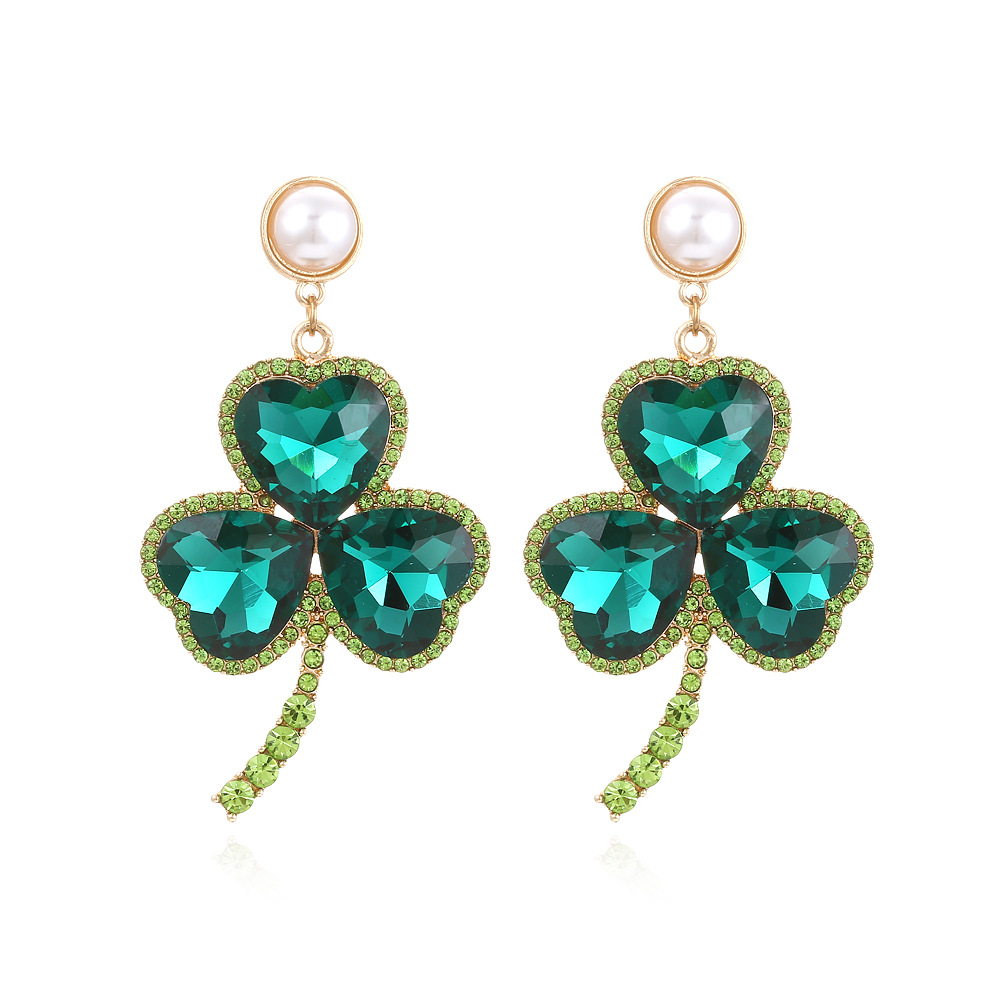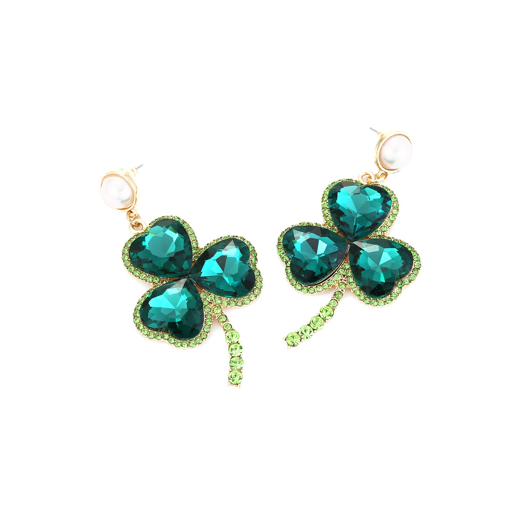 Emerald Colorful Crystals Clover Earrings
