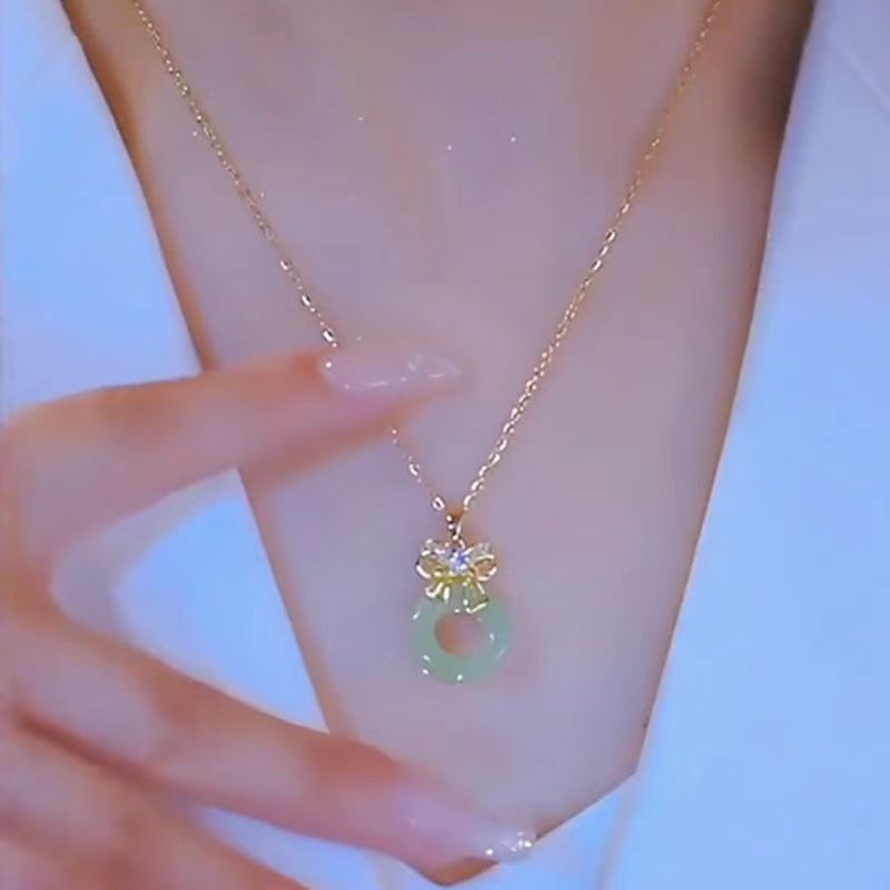 Product information:Treatment Process: Microinsert Color: Gold Chain style: O-ring chain Material: copper titanium steel Popular elements: Ruyi, auspicious pattern, safety lock Style: Elegant