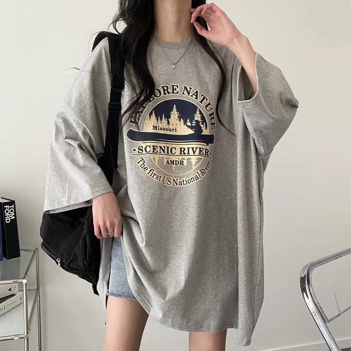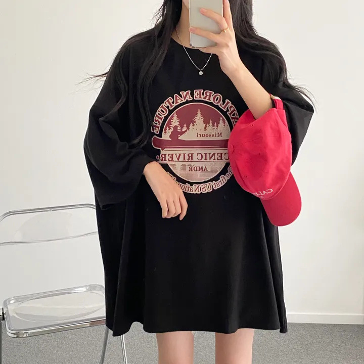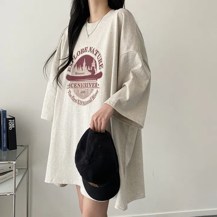 T-shirt Women's Summer Loose Round Neck College Style