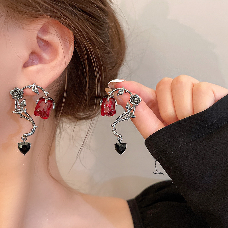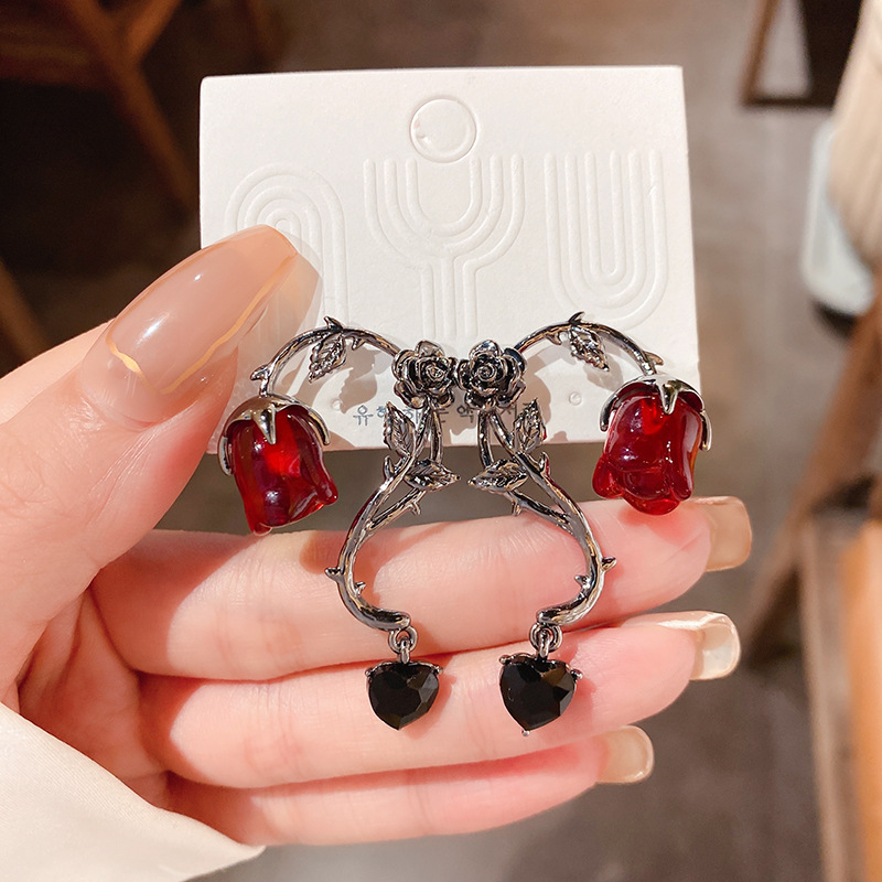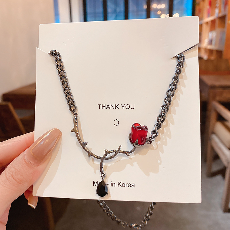 Color: silver needle black, silver needle red, necklace black, necklace red