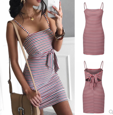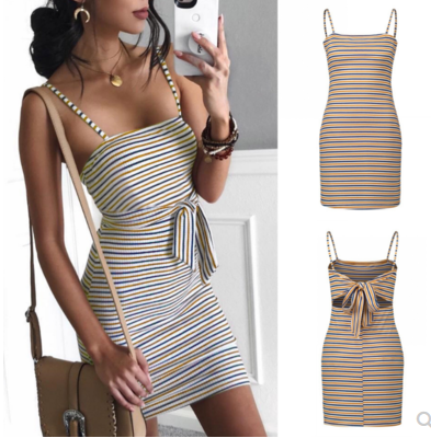 The new AliExpress wish hot sale summer sexy color striped dress
