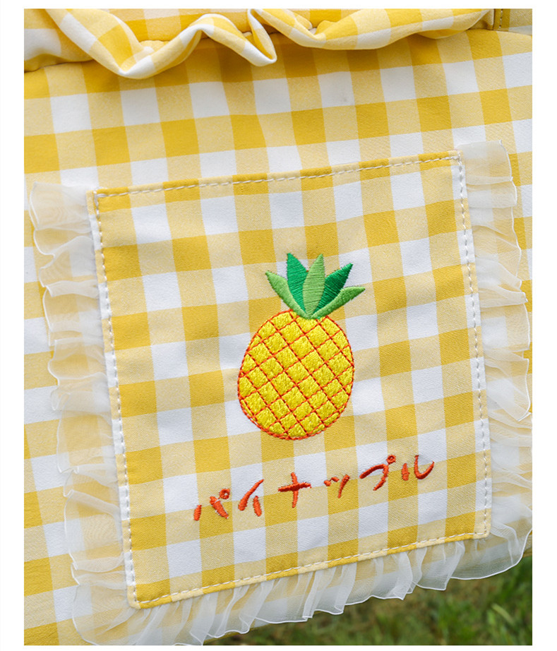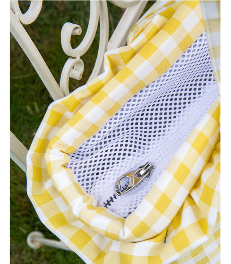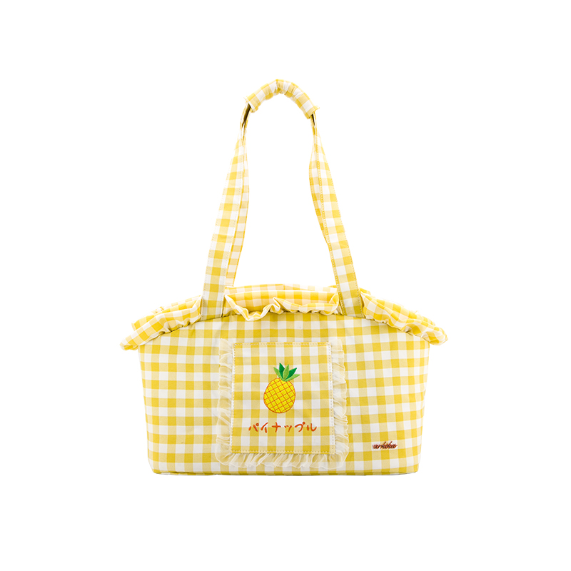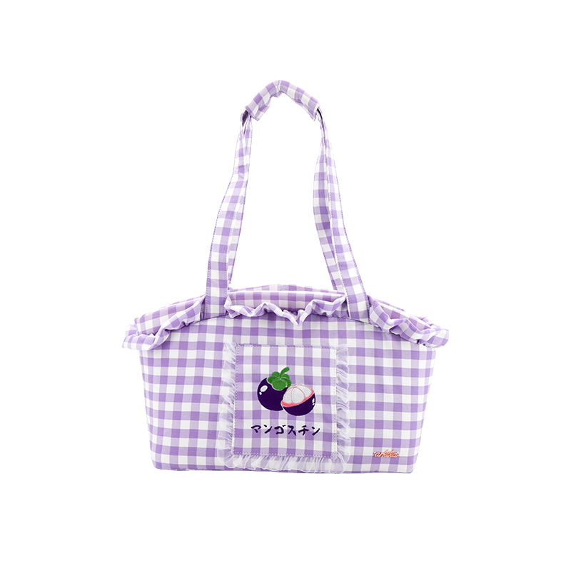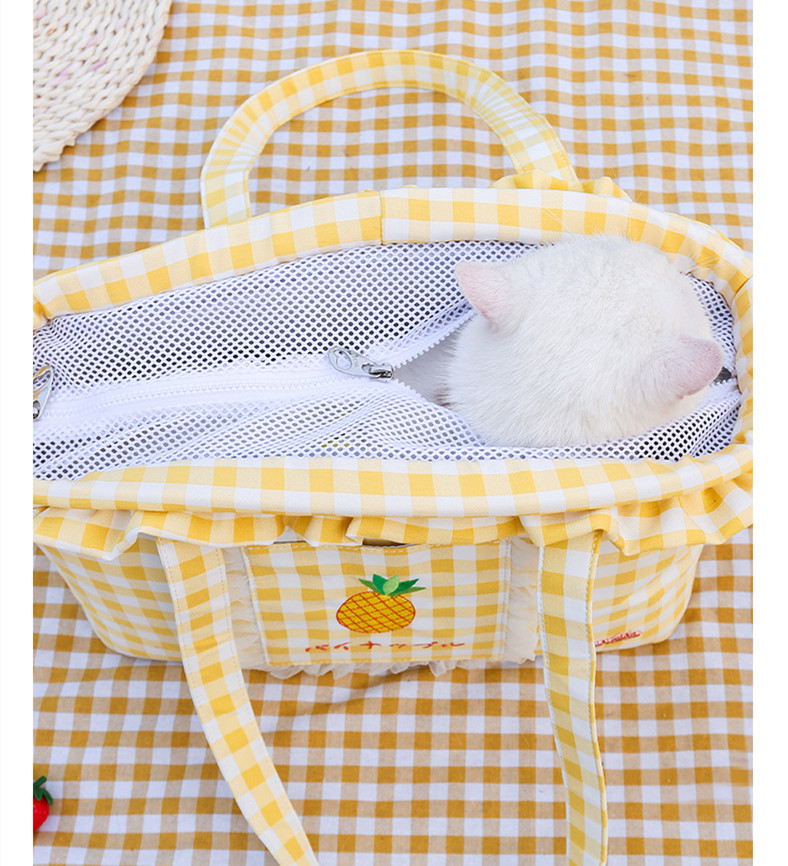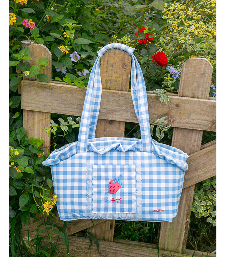 Color classification: raspberry blue, peach powder, mangosteen purple, pineapple yellowSize: 36.5*17*26cmApplication: <12 kg dogs/cats/rabbitsProduct material: plaid fabric/silk lining/alloy buckle