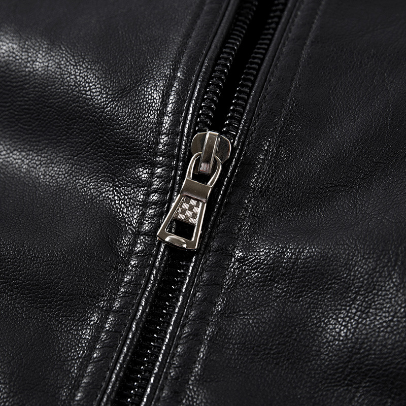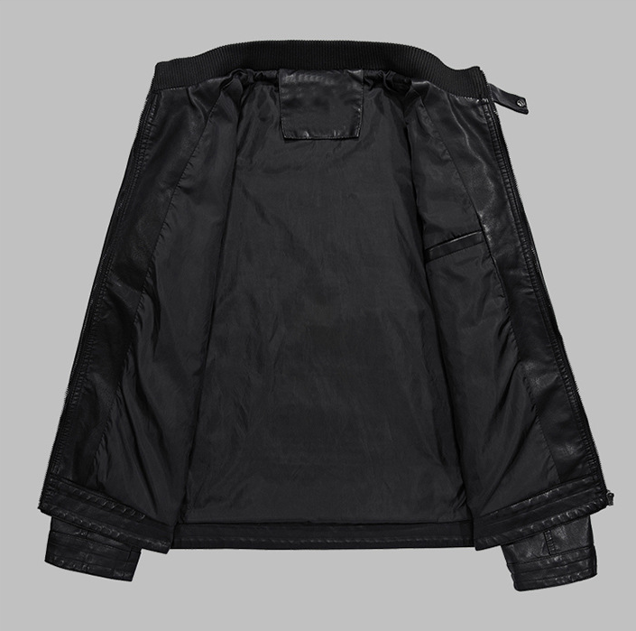 Men's PU Leather Short Stand Collar Youth Motorcycle Leather Jacket