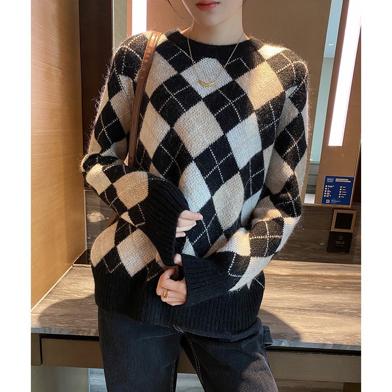 Color: rhombus cardigan, rhombus pullover