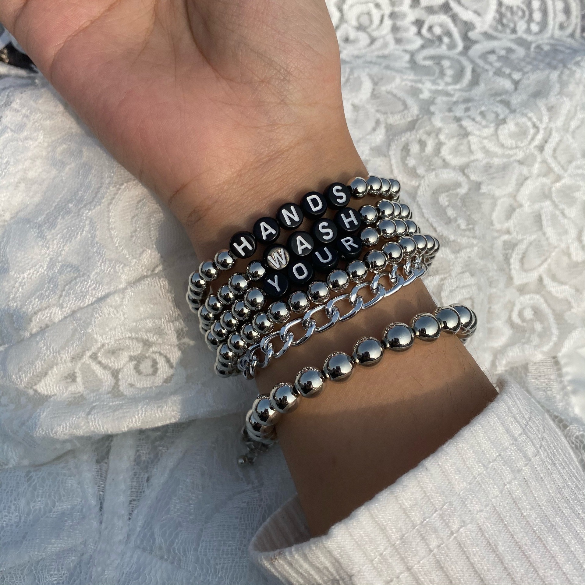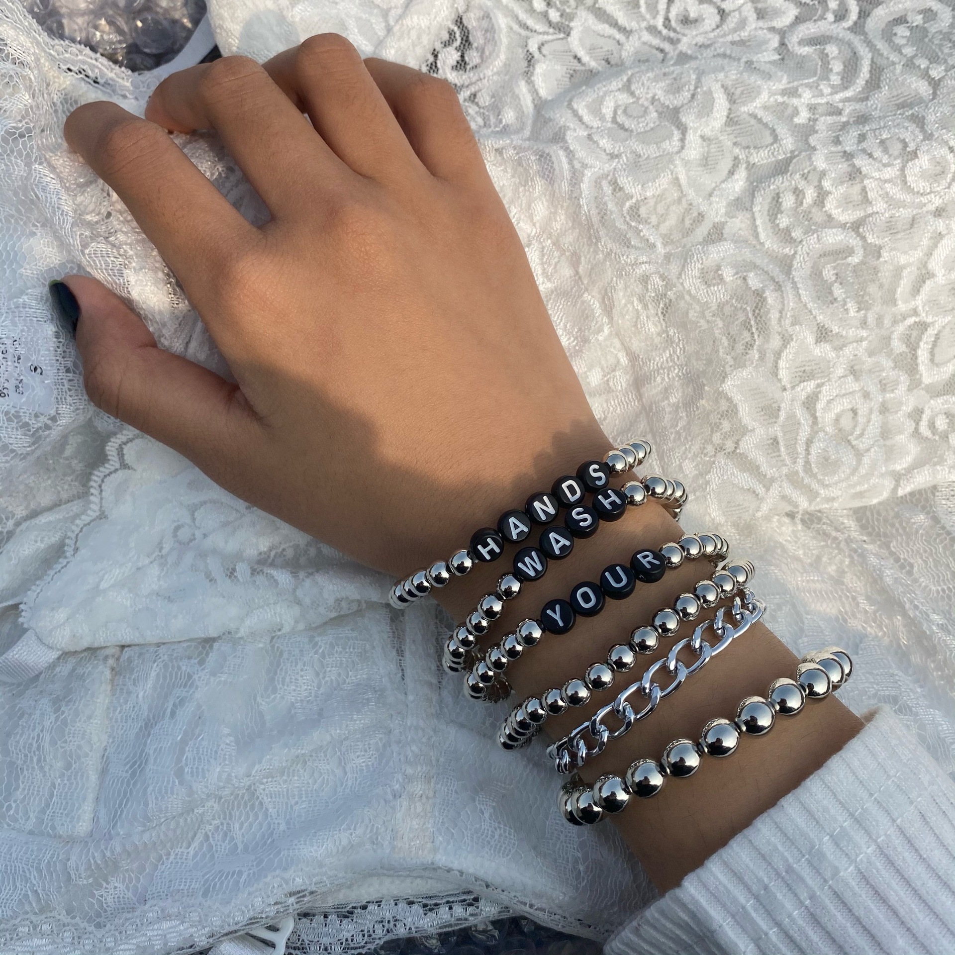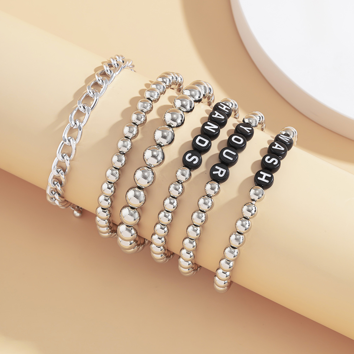 European And American Ins Trend Letter Beaded Suit Bracelet Women Simple Elastic CCB Round Beads
