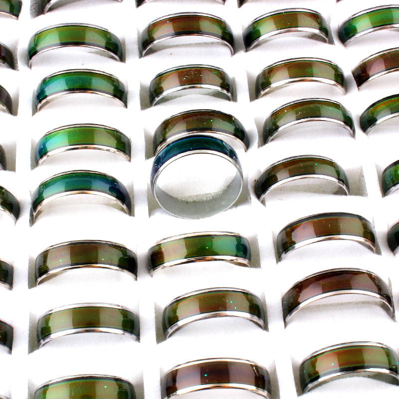 Product Name: color change ringSize: ring width 6mmSize: 6mm-10mm(diameter of No.6 is 16mm, that of No.7 is 17mm, that of No.8 is 18mm, that of No.9 is 19mm, and that of No.10 is 20mm)Package: OPP bag