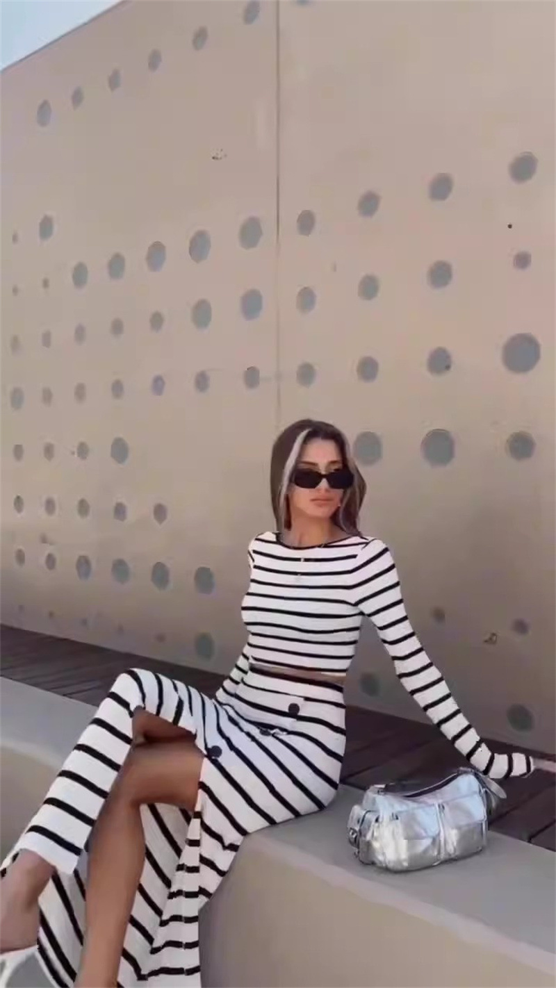 Product information: Fabric name: Polyester Skirt-type: high-waisted skirt Color: black and white stripes Size: S,M,L,XL Style type: private clothing socialite Skirt Category: skirt Popular elements: distressed Style: sexy style