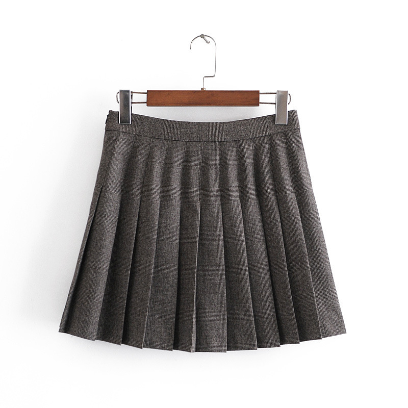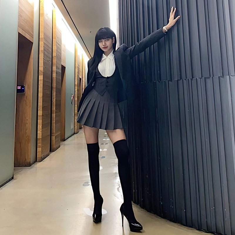 Color: dark gray short suit, dark gray small vest, dark gray pleated skirt