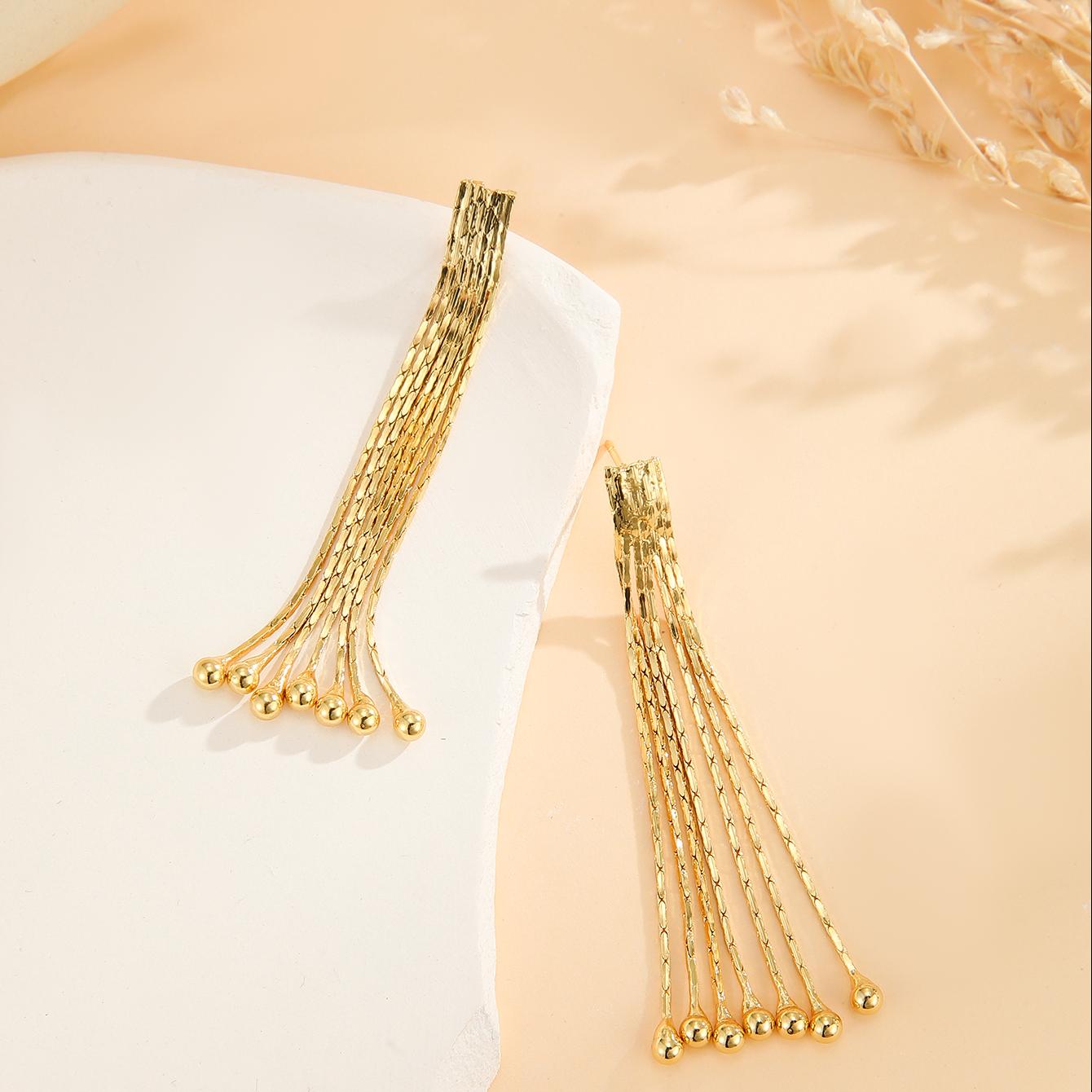 1. Metal tassel earrings, composed of a gold bead chain at the end.