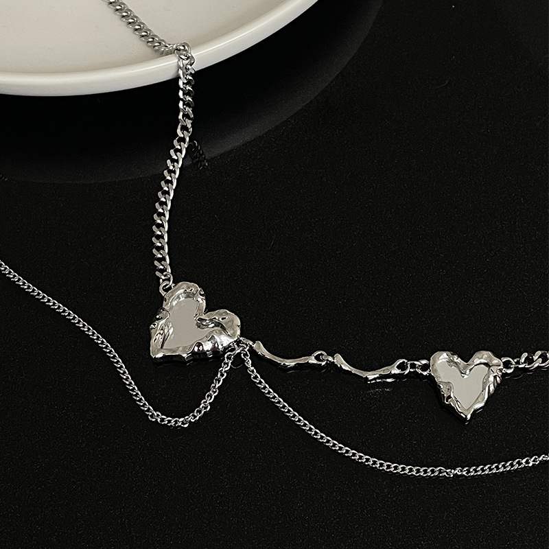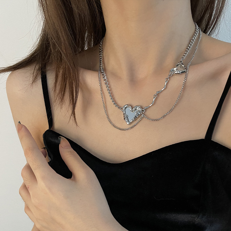 Product information:Color: Mirror love necklacePendant material: AlloyStyle: Women'sChain style: Box chainMaterial: titanium steelShape: heart shapePopular elements: Love/heartStyle: cold wind