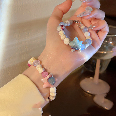 Product information:Color: Pink starfish bracelet, blue starfish braceletStyle: Women'sMaterial: Material/resinModeling: Animal/zodiacPopular elements: StarfishStyle: Niche
