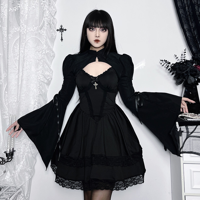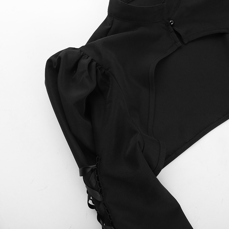 Product information: Color: Black Size: S,M,L Popular elements: padded shoulder strap bell sleeve Style: Cardigan Fabric name: Polyester Style: sexy style Craft: collage/stitching