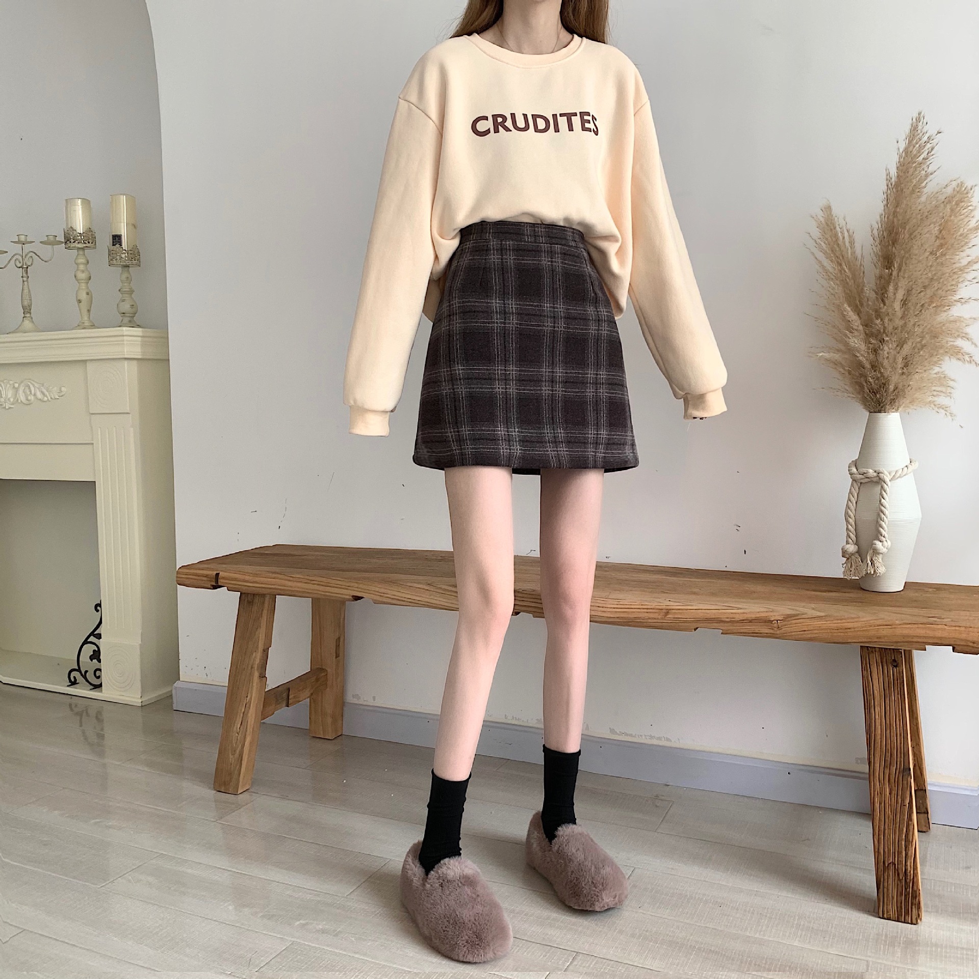 Color: X Y Trend 7842# Black Plaid [Short Style], Black Plaid Medium and Long Section, X Y Trend 7842# Dark Brown Plaid [Short Section], X Y Trend 7842# Dark Brown Plaid Medium and Long Section