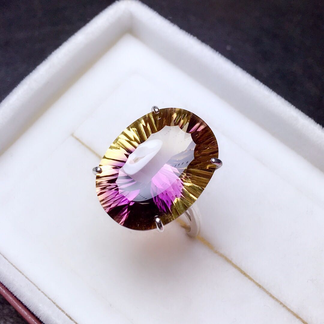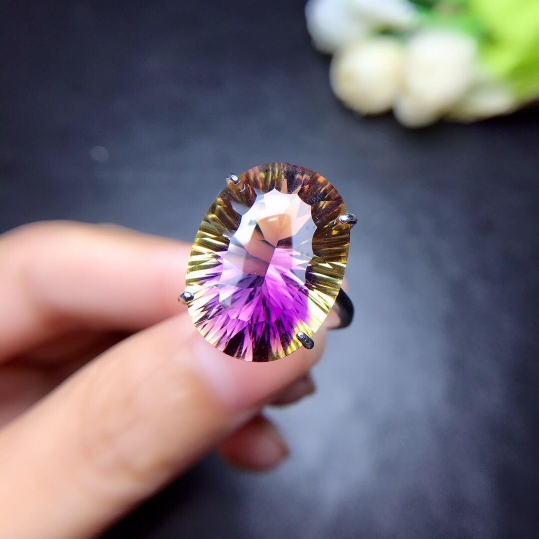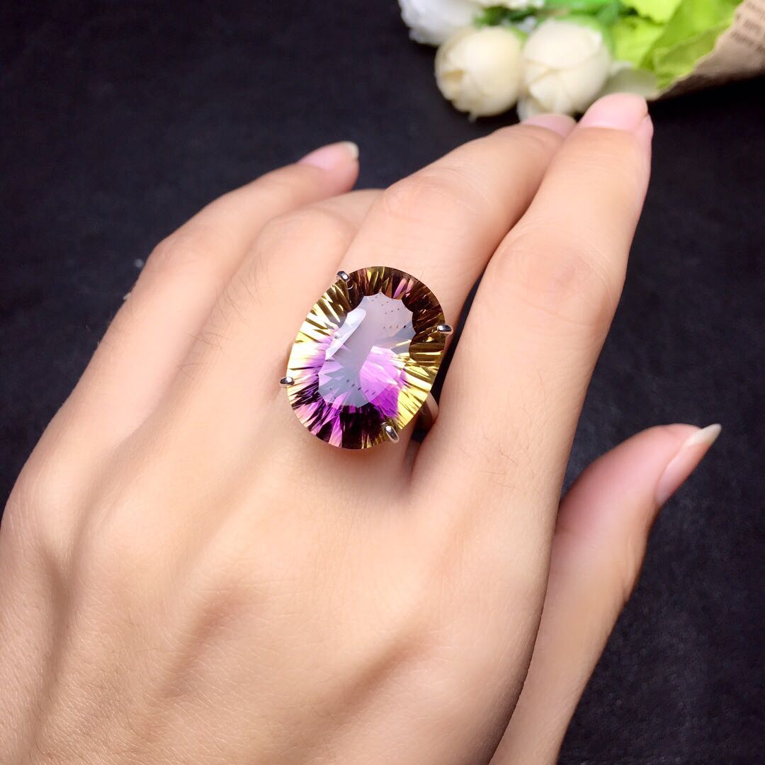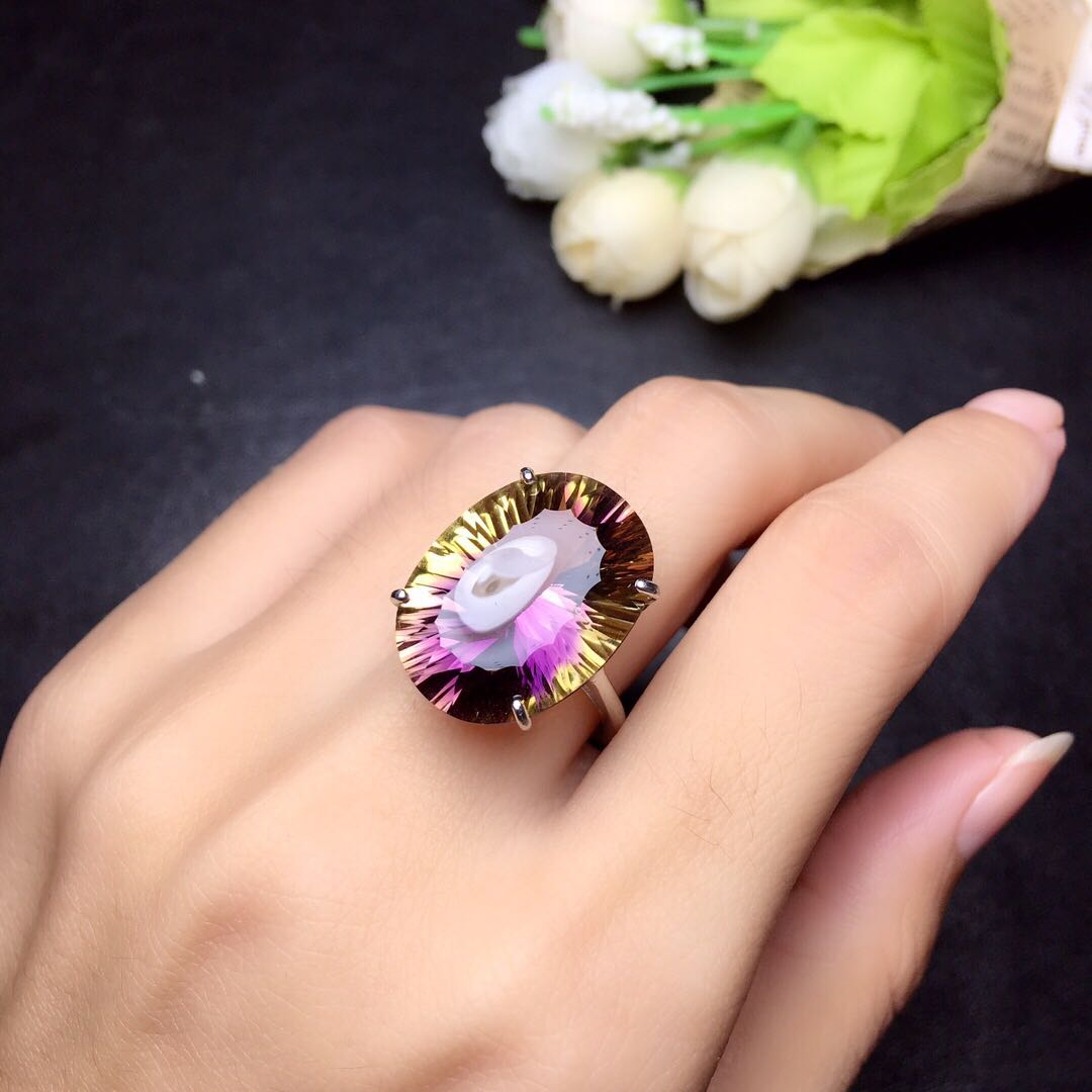 Super large grain violet yellow crystal ring