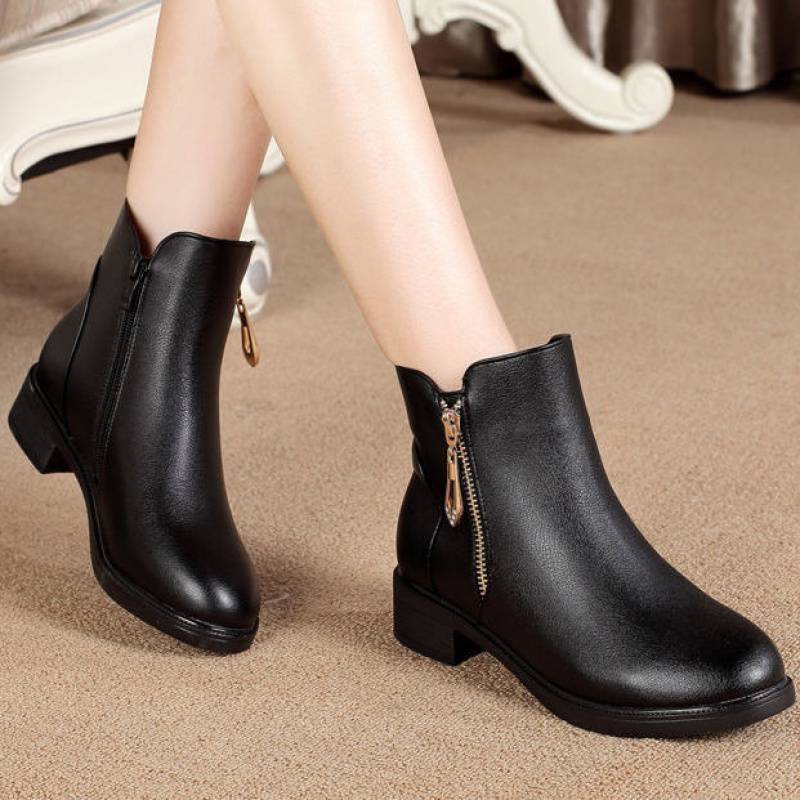 Women's Thick-heeled Non-slip Round Toe Soft-soled Martin Boots