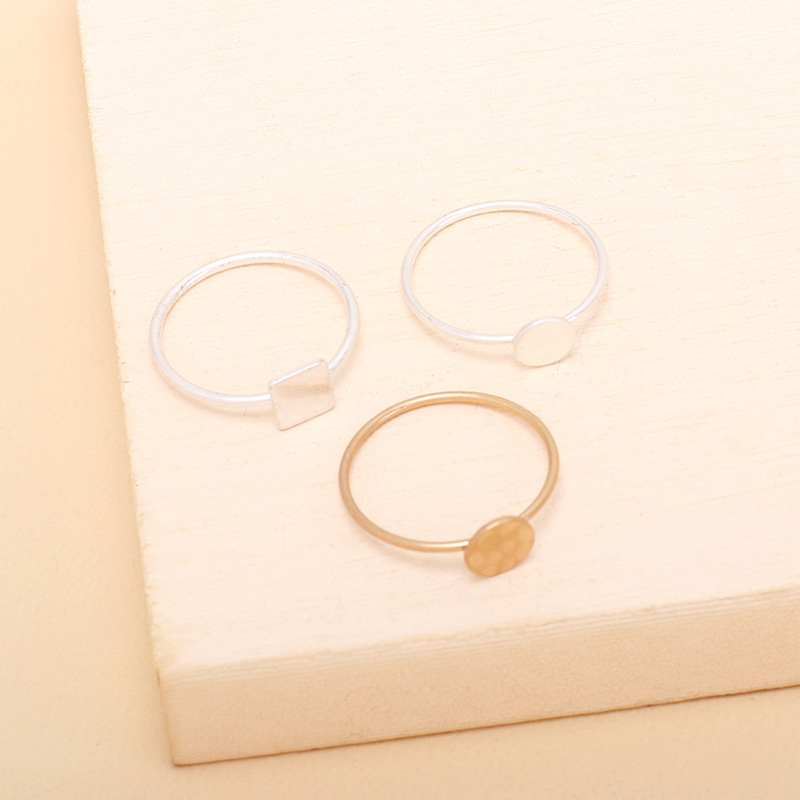 Geometric Square Round Ring Combination Set