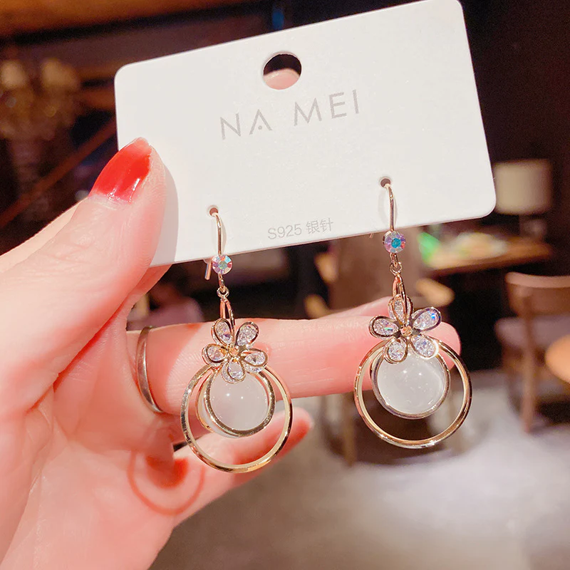 Product information:Material: silverModeling: GeometryInlay material: white gold/K white gold inlaid with gemsColor: A36Popular elements: tassels, geometricPackage:Earring X1pair