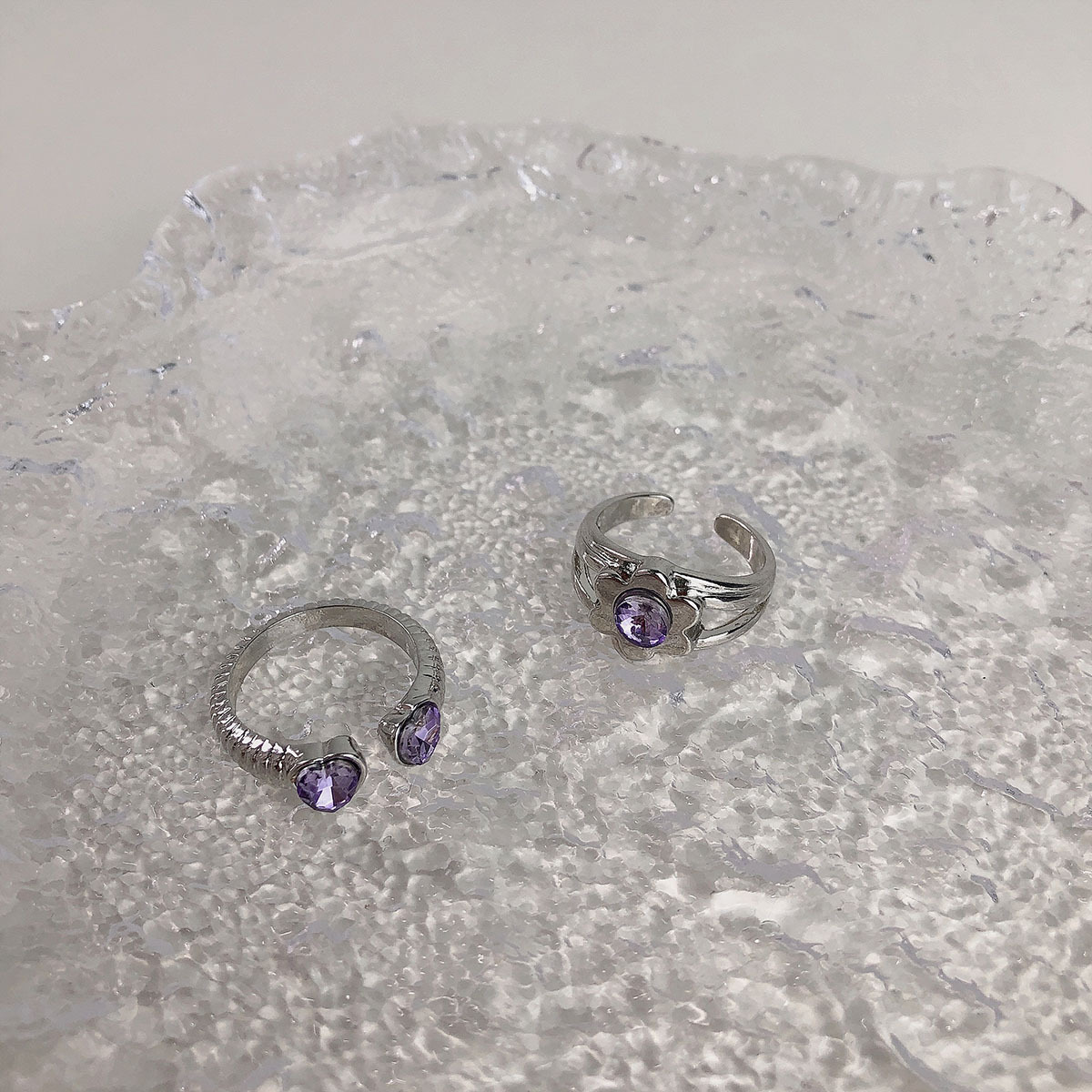 Color: A geometric irregular ring, B flower ring, C small love ring